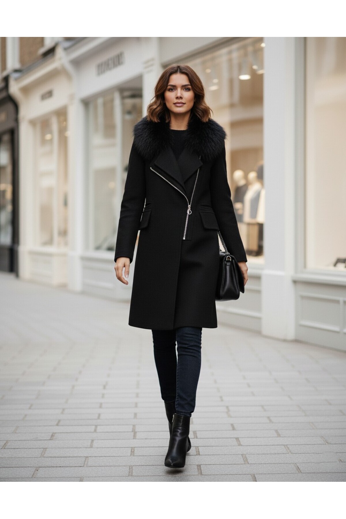 Kadın Kaşe Kışlık Kürklü Siyah Kaban Kadın Kaşe Kışlık Kürklü Siyah Kaban mthcoi822siyah 2XL
