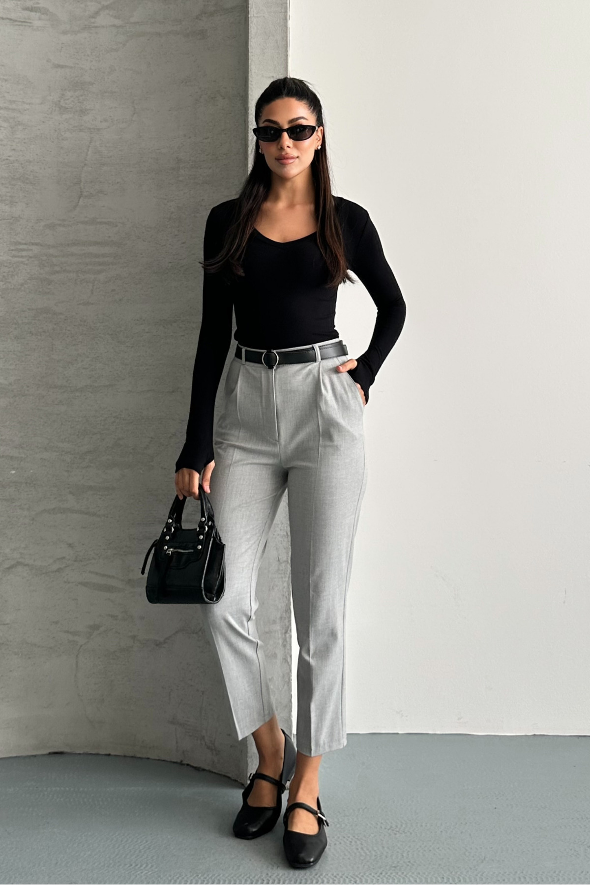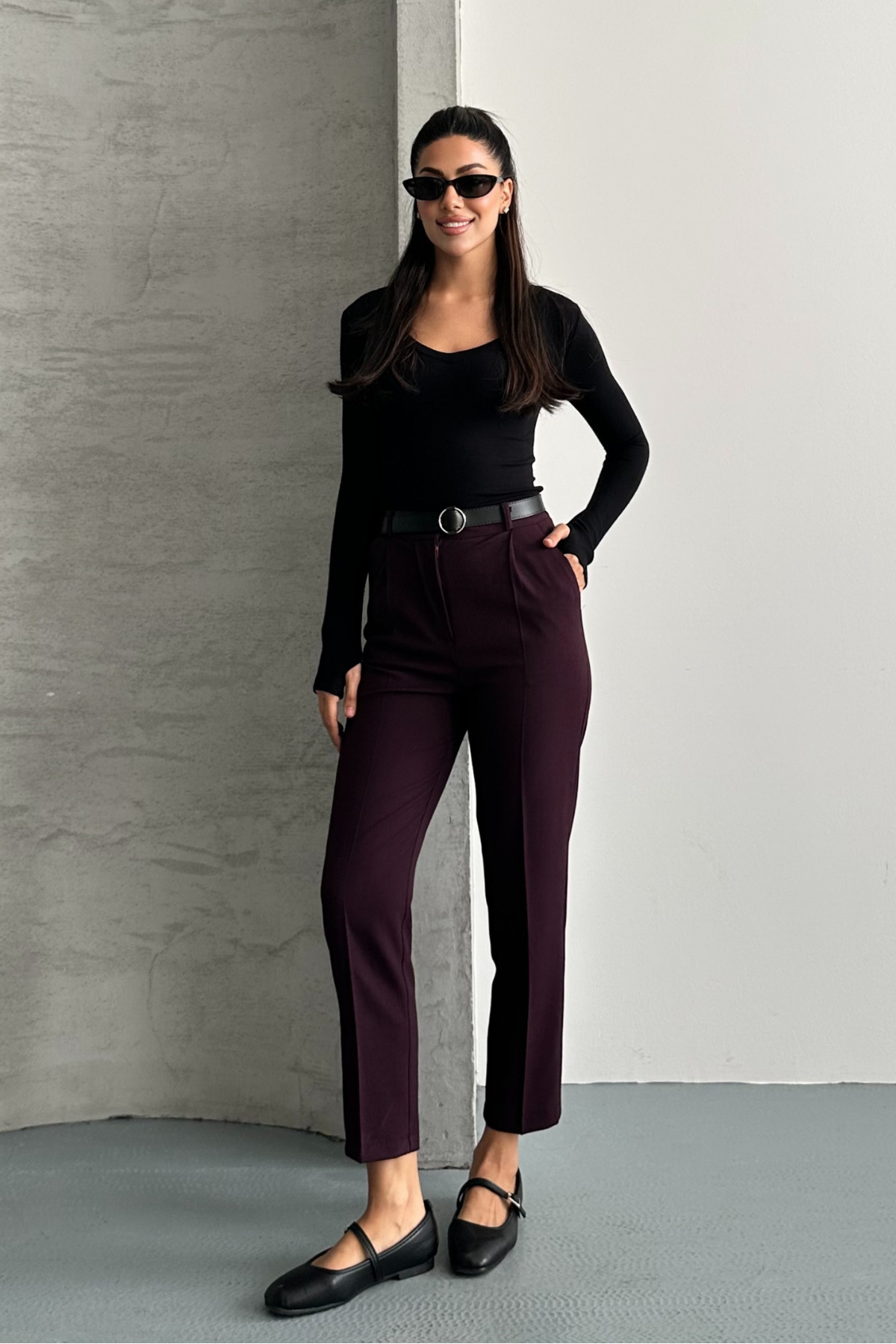 Kadın Dar Paça Pileli Kemerli Kumaş Sıgaret Pantolon Kadın Dar Paça Pileli Kemerli Kumaş Sıgaret Pantolon 590 44