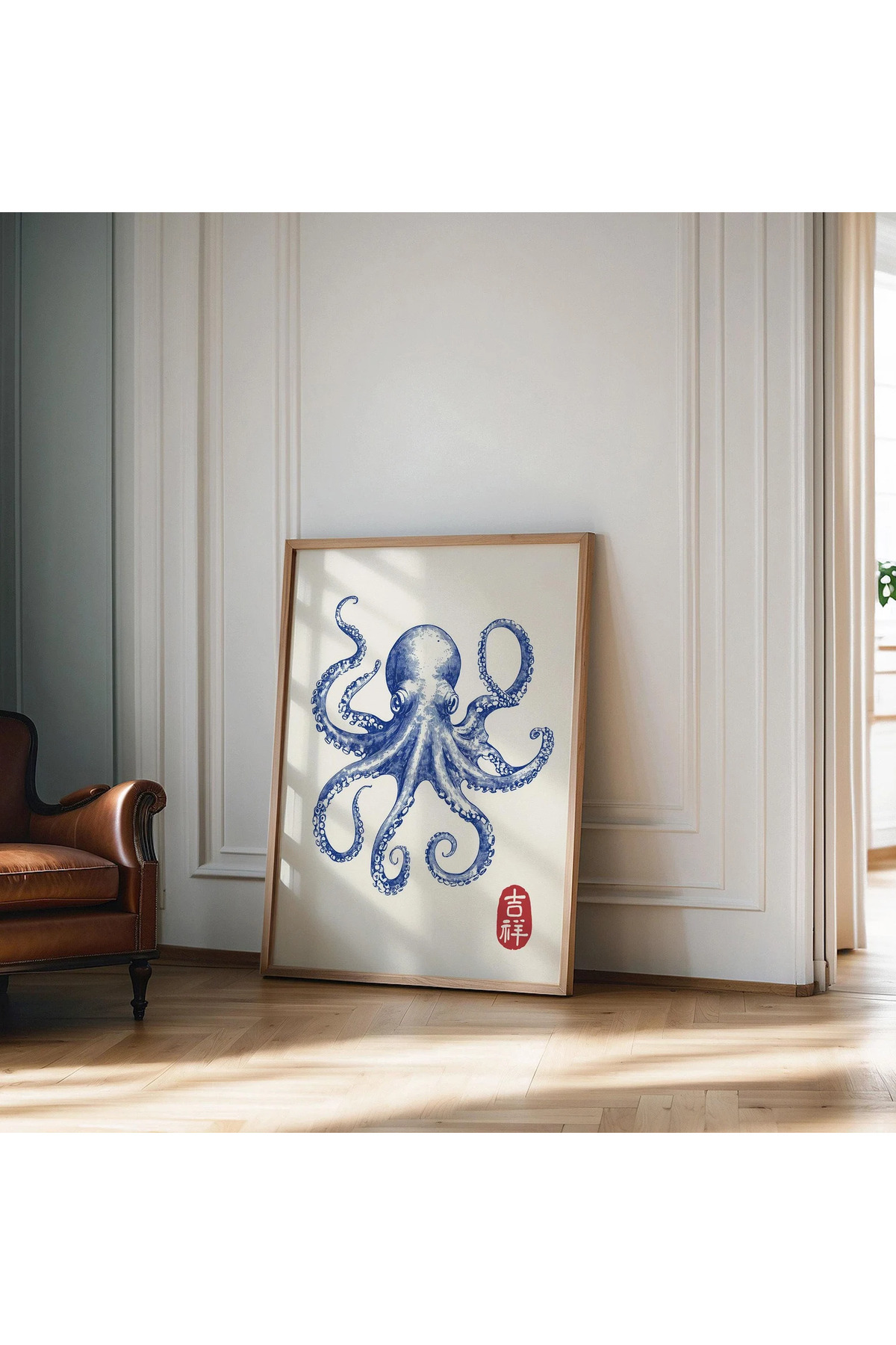 Estetik Modern Dekor Blue Octopus Japon Tasarım Mavi Ahtapot Vintage Çerçevesiz Kuşe Kağıt Poster Estetik Modern Dekor Blue Octopus Japon Tasarım Mavi Ahtapot Vintage Çerçevesiz Kuşe Kağıt Poster 8352432g4g 50 x 70