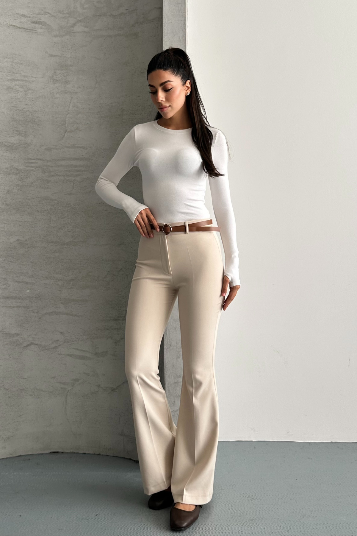 Kadın Yüksek Bel İspanyol Paça Kemerli Palazzo Pantolon Kadın Yüksek Bel İspanyol Paça Kemerli Palazzo Pantolon 522 44