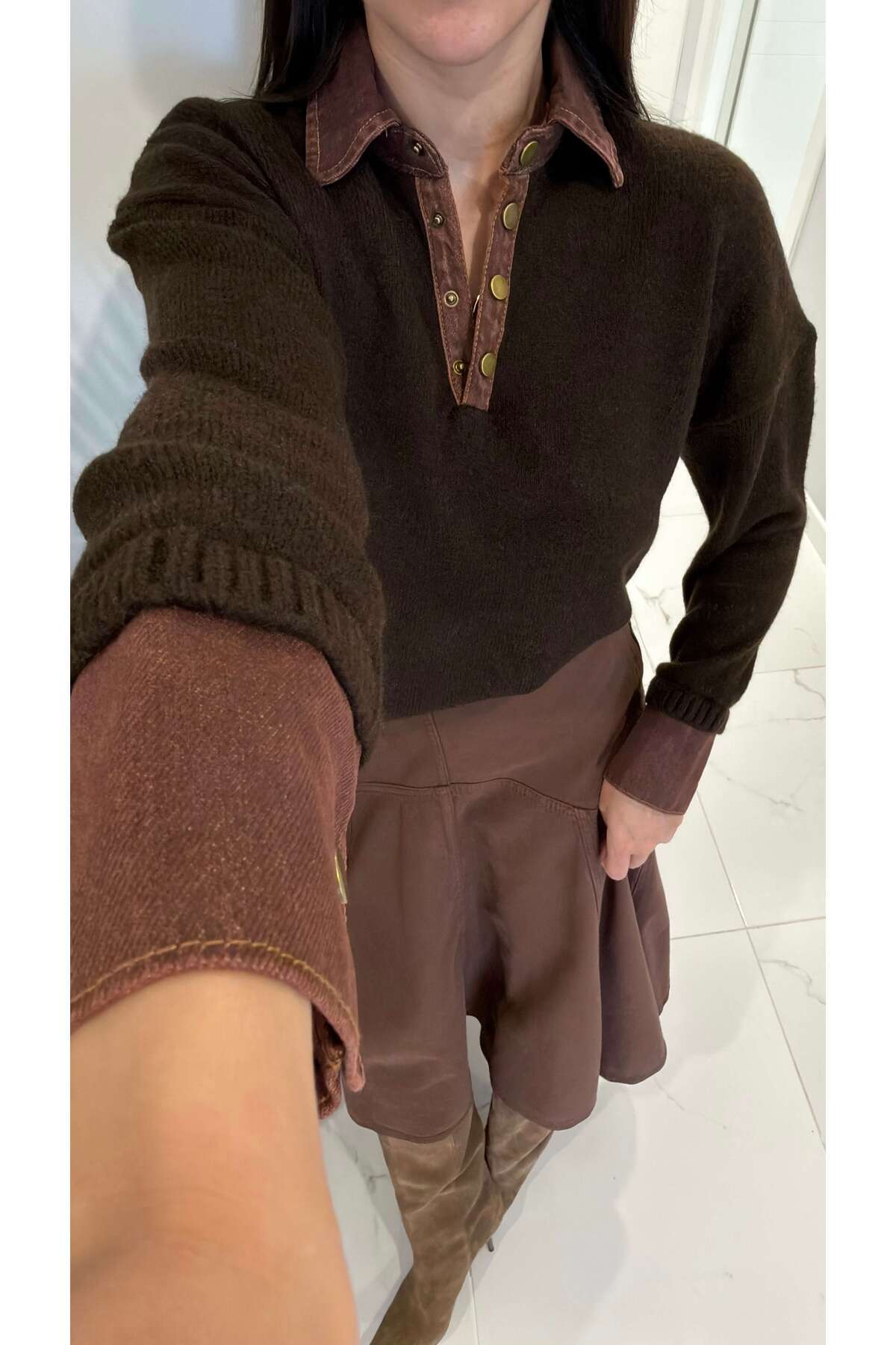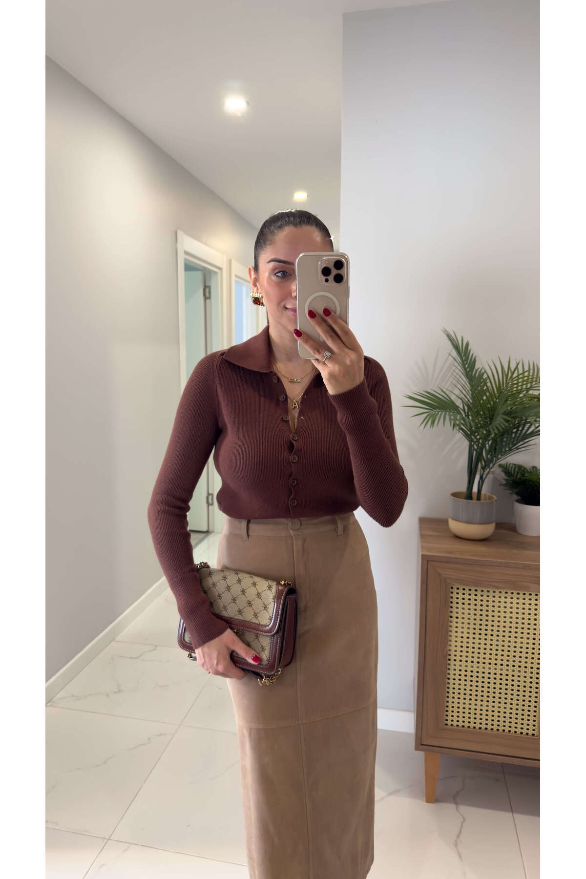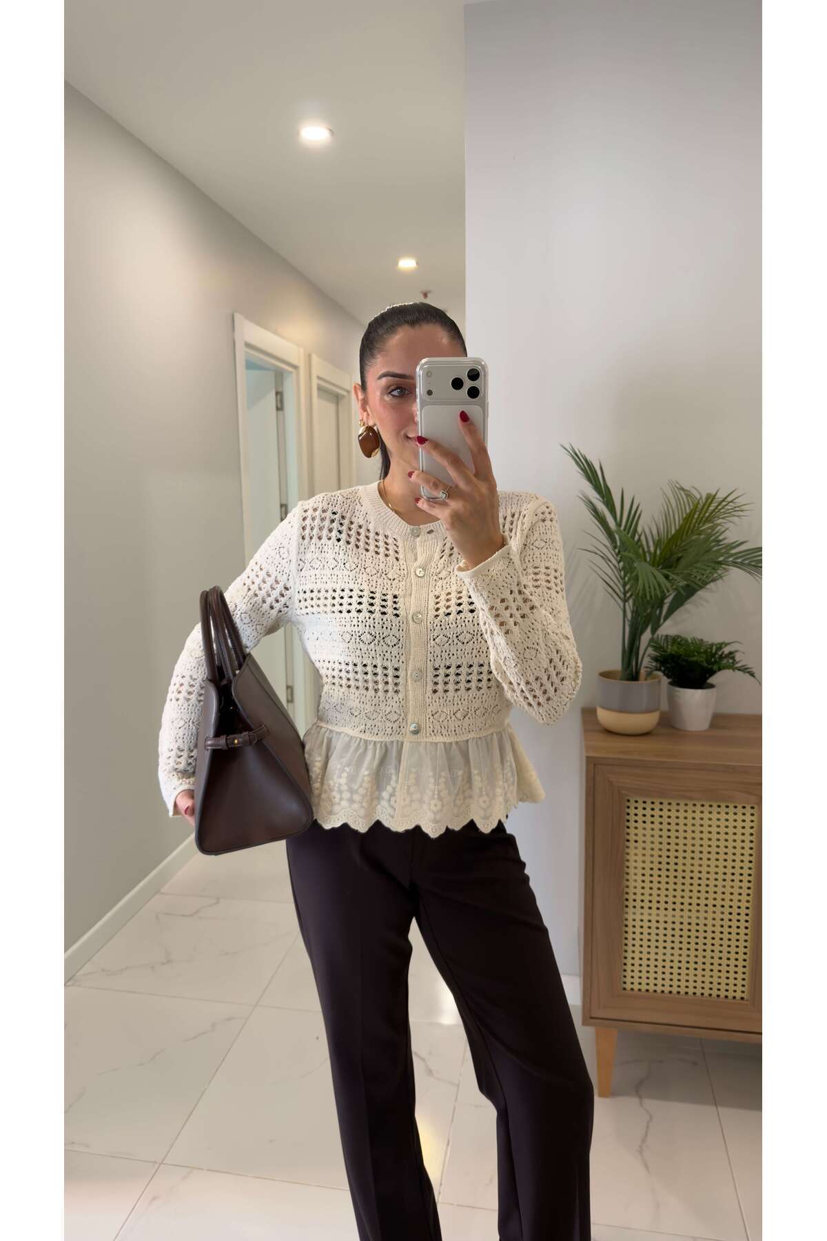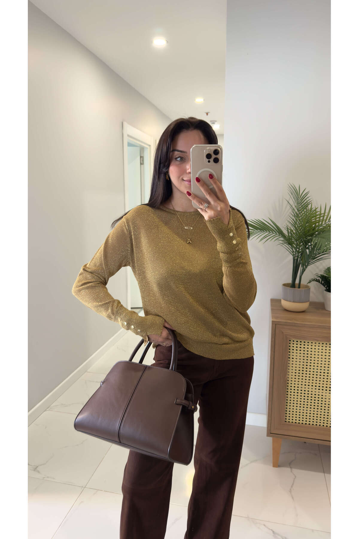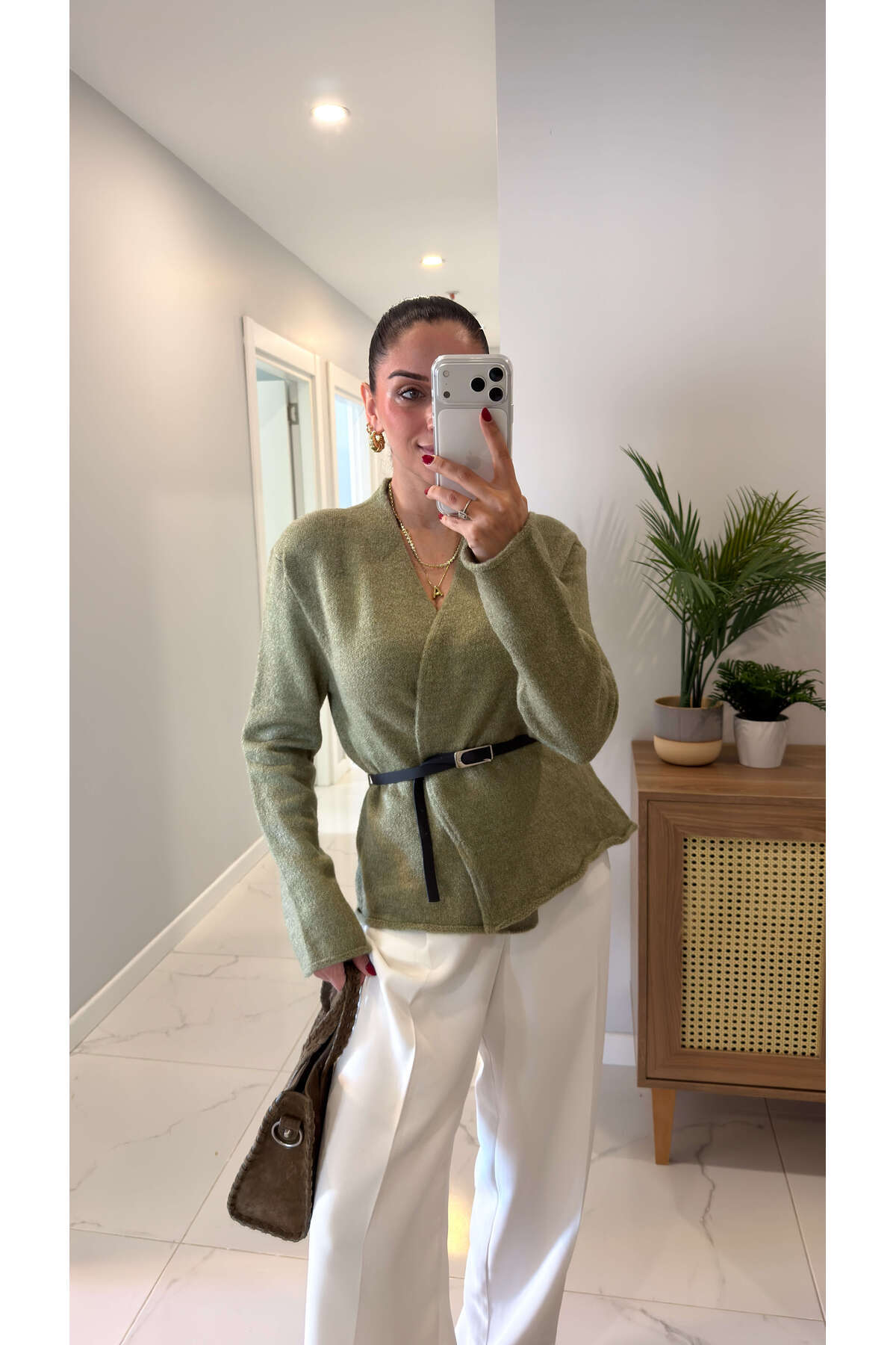 Orenya Haki Simli Kol Detaylı Triko Orenya Haki Simli Kol Detaylı Triko TRK612 Standart