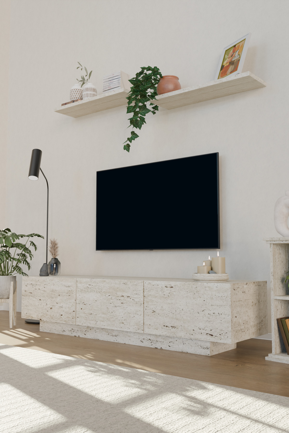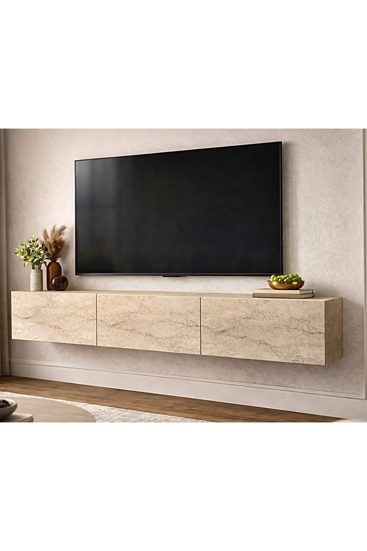 Terra Led Işıklı Traverten Mermer Tv Ünitesi Modern Uçan Tv Sehpası 3 Kapaklı Bohem Minimal Tasarım Terra Led Işıklı Traverten Mermer Tv Ünitesi Modern Uçan Tv Sehpası 3 Kapaklı Bohem Minimal Tasarım est115 تک سایز