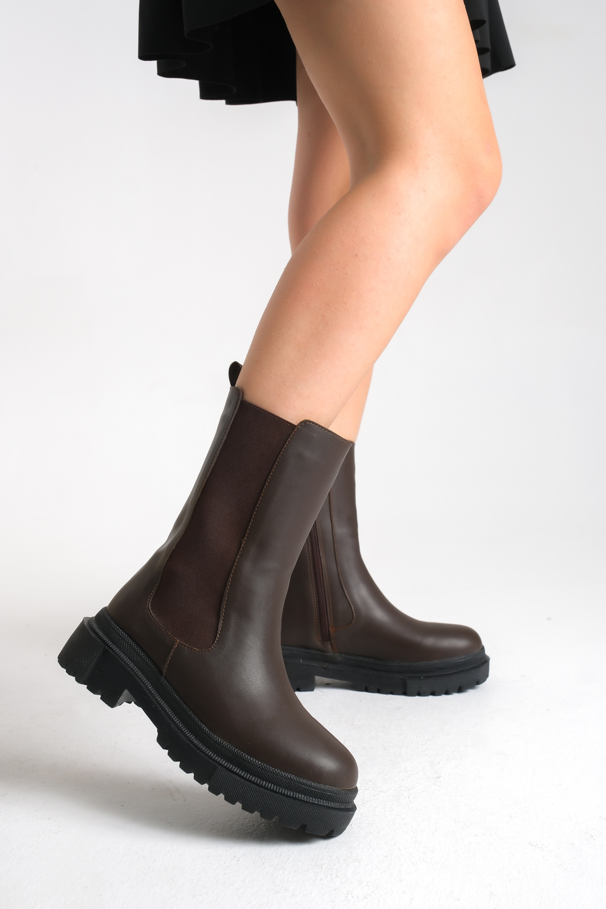 Kahverengi Deri Kısa Kadın Postal Bot Lastikli Kalın Tabanlı Su Geçirmez Harper Kahverengi Deri Kısa Kadın Postal Bot Lastikli Kalın Tabanlı Su Geçirmez Harper Harperbot 40