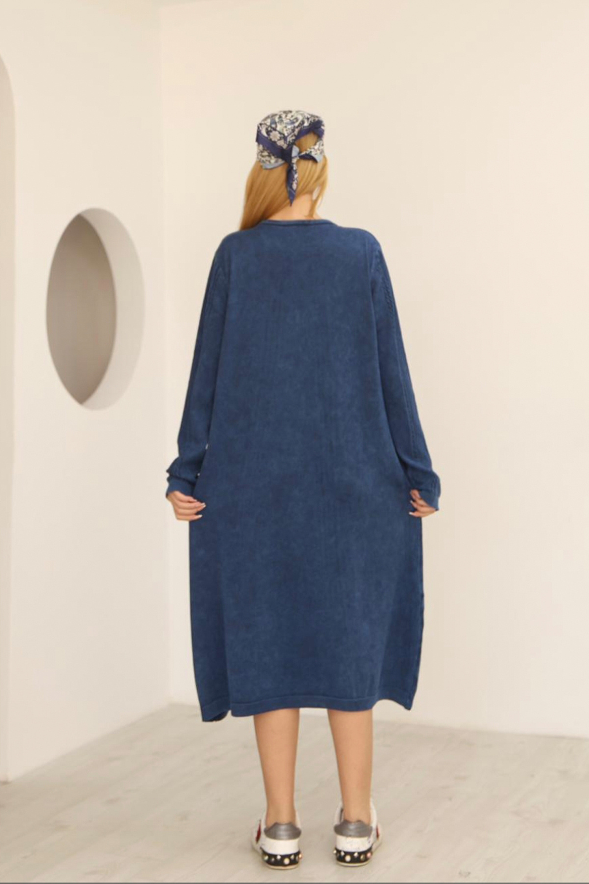Kadın Lacivert Yuvarlak Yakalı Desenli Cepli Eskitme Salaş Pamuklu Triko Midi Elbise Kadın Lacivert Yuvarlak Yakalı Desenli Cepli Eskitme Salaş Pamuklu Triko Midi Elbise 2583-SCHS Standart