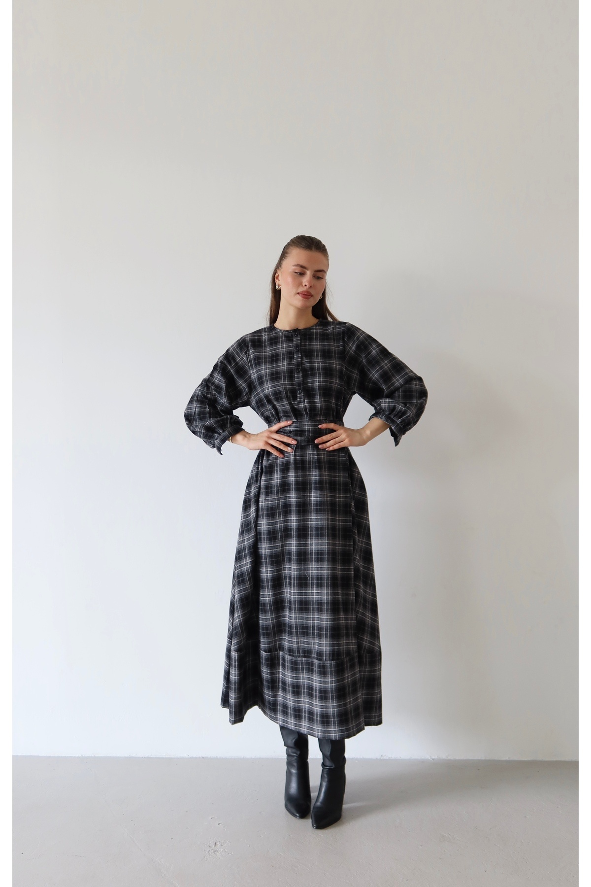 Premium ekose kumaş elbise Premium ekose kumaş elbise by89079 L