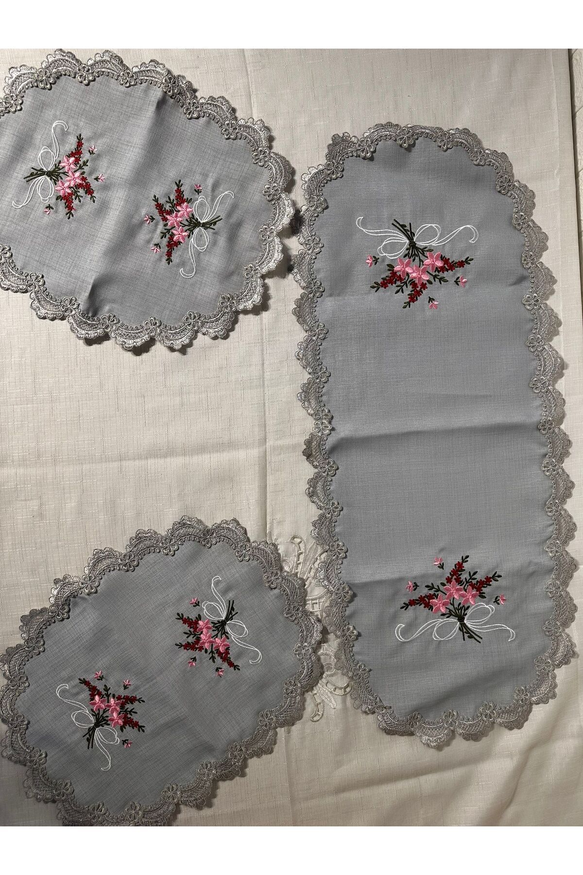 Makinede Etamin İşleme Yatak Odası 3 Parça Sehpa Örtüsü, Çeyiz, Masa Örtüsü Makinede Etamin İşleme Yatak Odası 3 Parça Sehpa Örtüsü, Çeyiz, Masa Örtüsü 3prcmsa 75 x 30