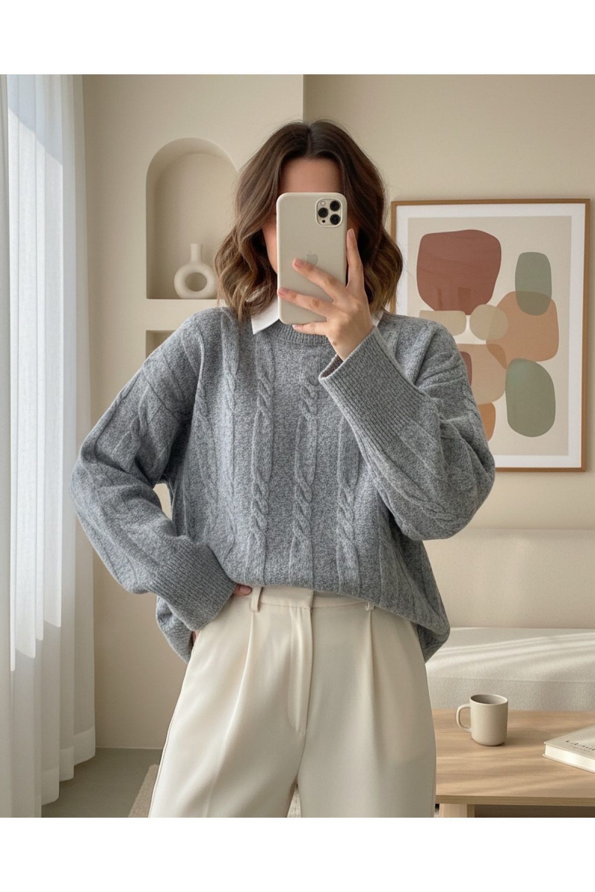 Kabartma Desenli Yumoş Triko Kazak Kabartma Desenli Yumoş Triko Kazak MR907239525 Standart