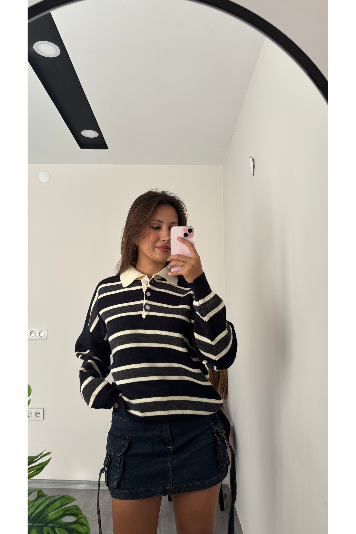 Çizgili Polo yaka kazak Çizgili Polo yaka kazak Standart