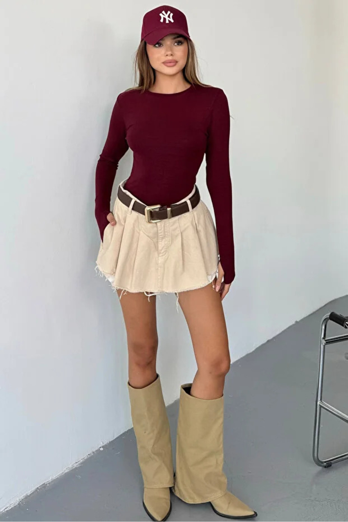 Bordo Bisiklet Yaka Parmak Geçme Detaylı Buzzy Kumaş Slim Fit Body-Bluz Bordo Bisiklet Yaka Parmak Geçme Detaylı Buzzy Kumaş Slim Fit Body-Bluz jnrc778010 XL