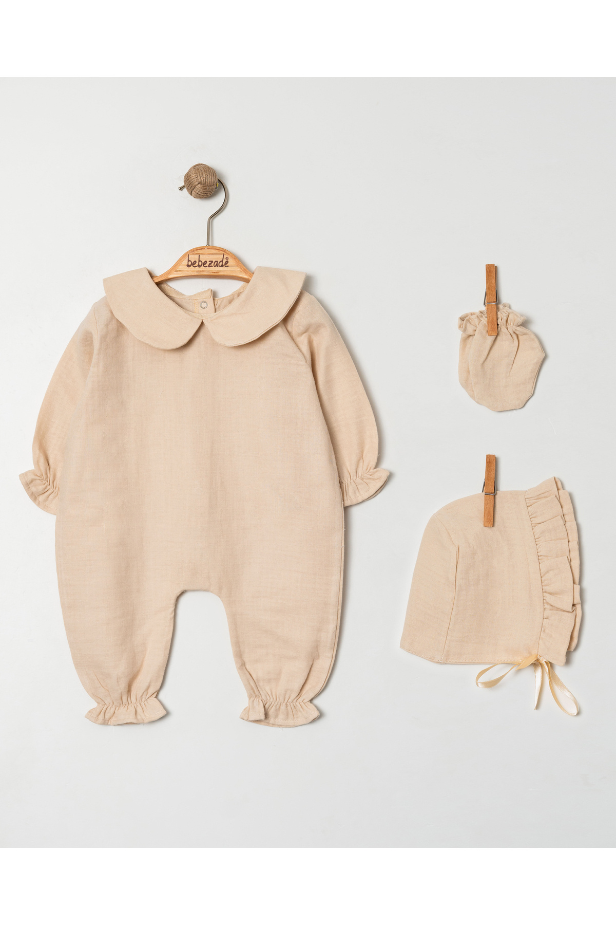Bebe Yaka 3 Parça Müslin Tulum Set Bebe Yaka 3 Parça Müslin Tulum Set 203 3-6 AY
