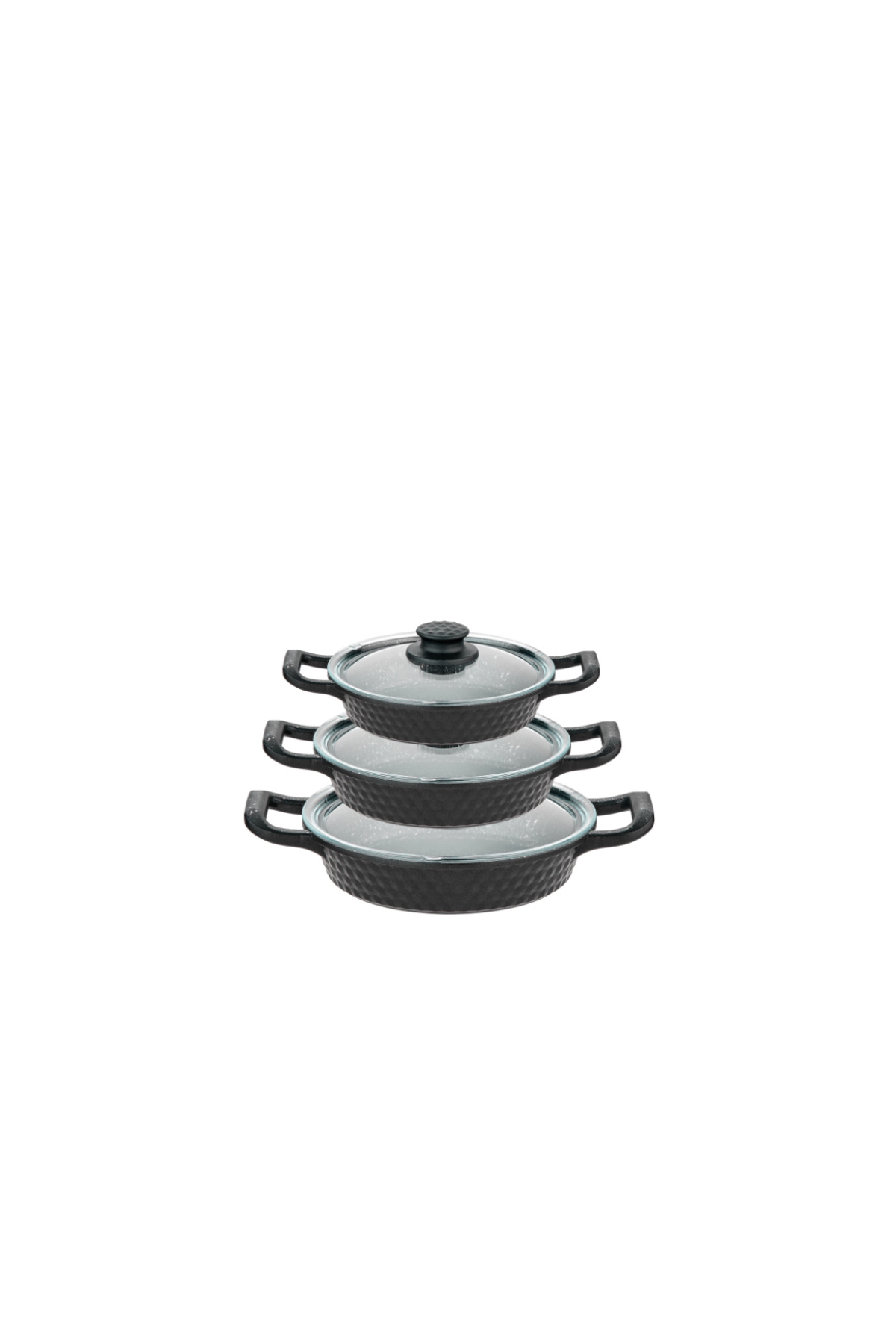3’LÜ KAPAKLI DÖKÜM SAHAN TAVA SETİ 6 PARÇA 18-20-22cm SİYAH 3’LÜ KAPAKLI DÖKÜM SAHAN TAVA SETİ 6 PARÇA 18-20-22cm SİYAH ZENA000041 تک سایز