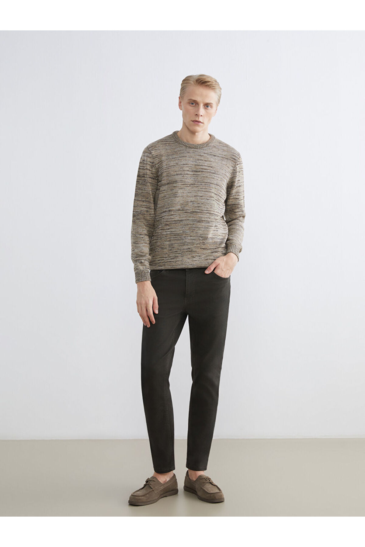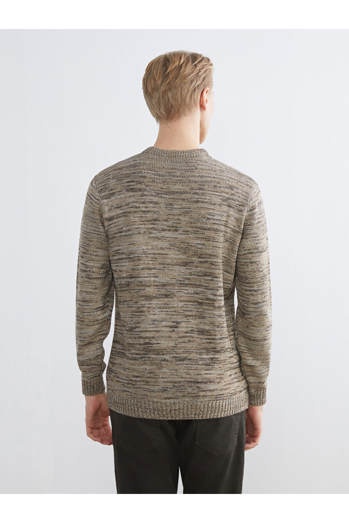 Bej Bisiklet Yaka Desenli Erkek Triko Kazak Bej Bisiklet Yaka Desenli Erkek Triko Kazak W52989Z8 2XL