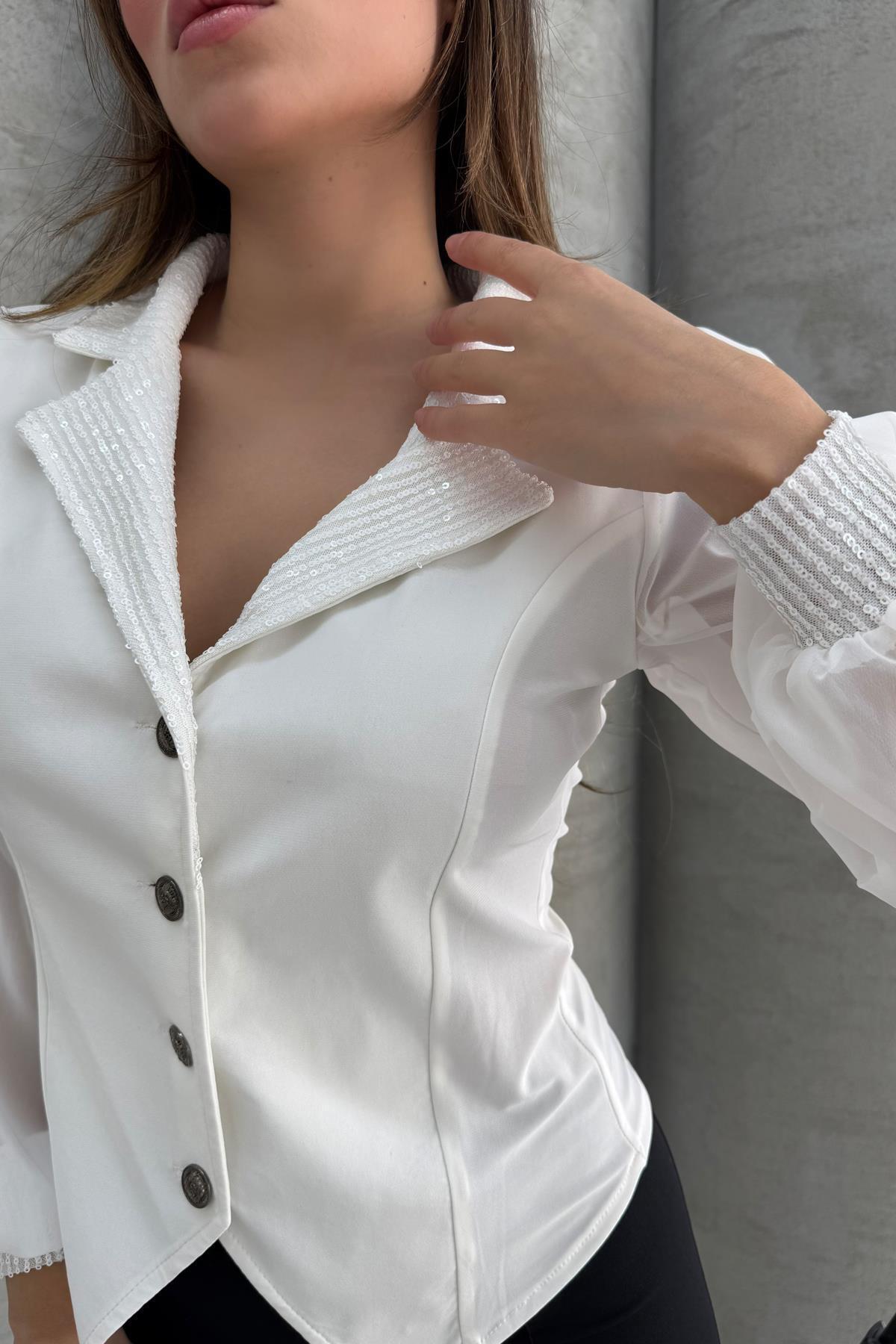 Kadın Düğme Detaylı Kolları Şifon Bluz Beyaz Kadın Düğme Detaylı Kolları Şifon Bluz Beyaz RB2784 XL