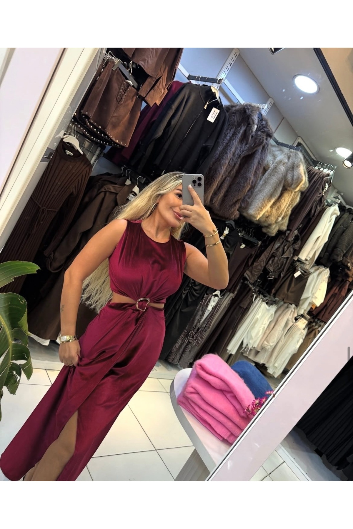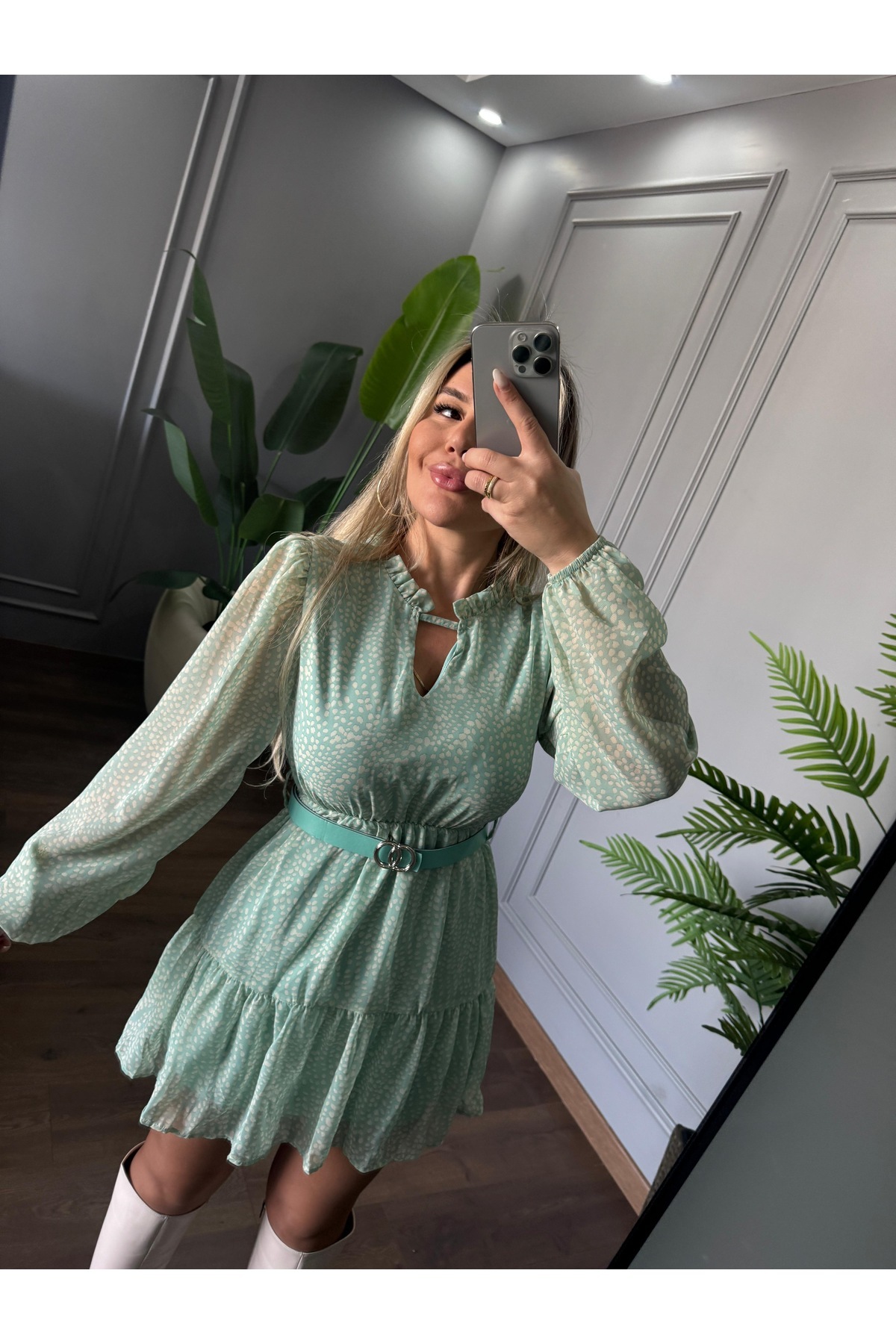 Astarlı kemerli şifon elbise Astarlı kemerli şifon elbise 2 L