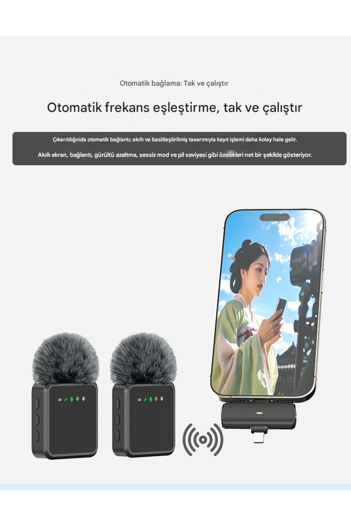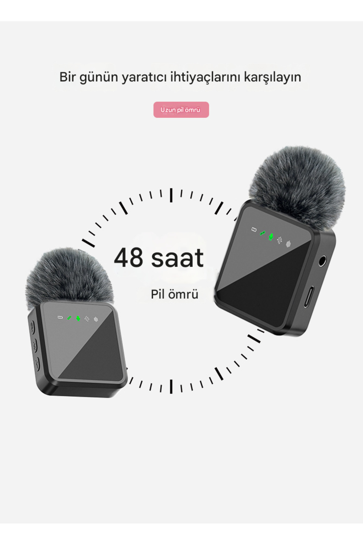 Kablosuz Tüylü Yaka Mikrofonu iPhone Type-C PC Tablet Video Kayıt Vlog Lightning USB-C Çıkış Kablosuz Tüylü Yaka Mikrofonu iPhone Type-C PC Tablet Video Kayıt Vlog Lightning USB-C Çıkış BWC-07 تک سایز