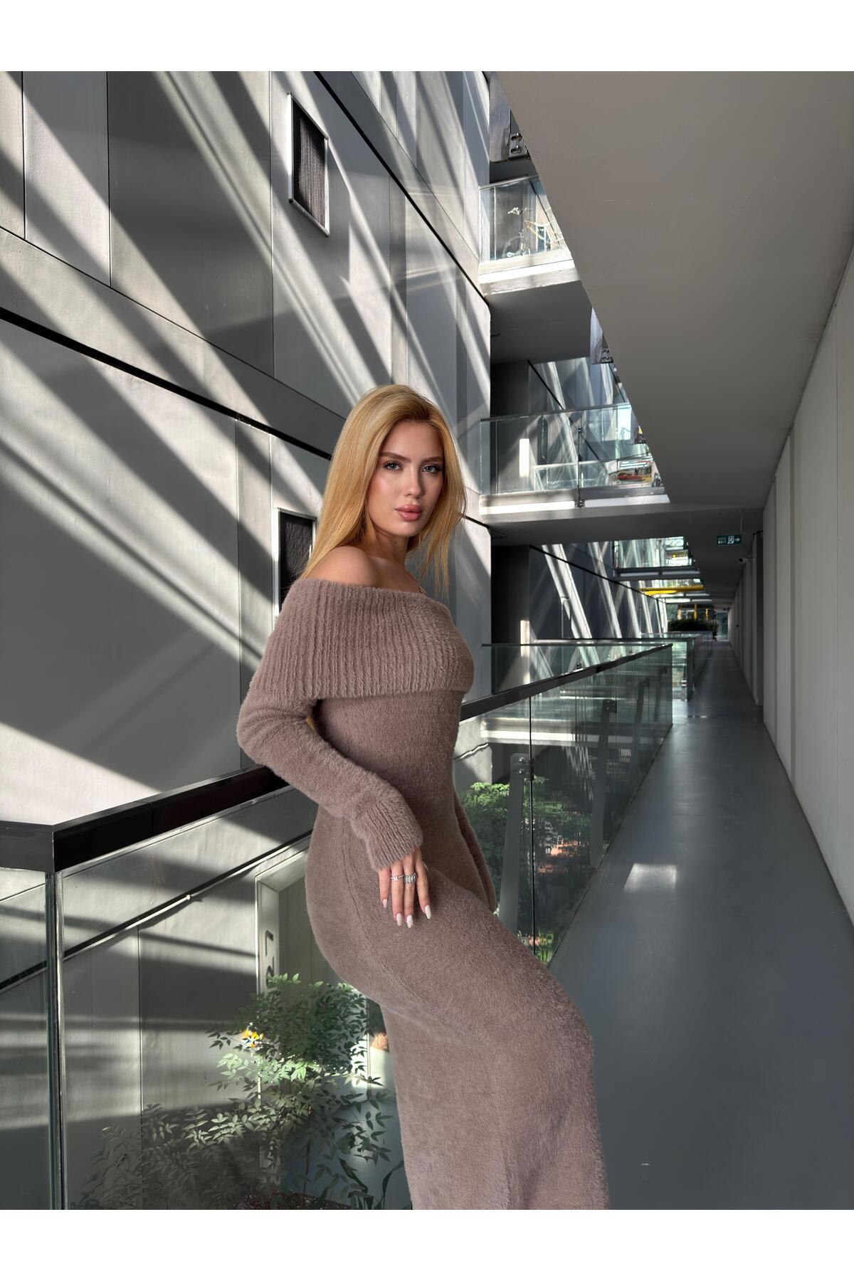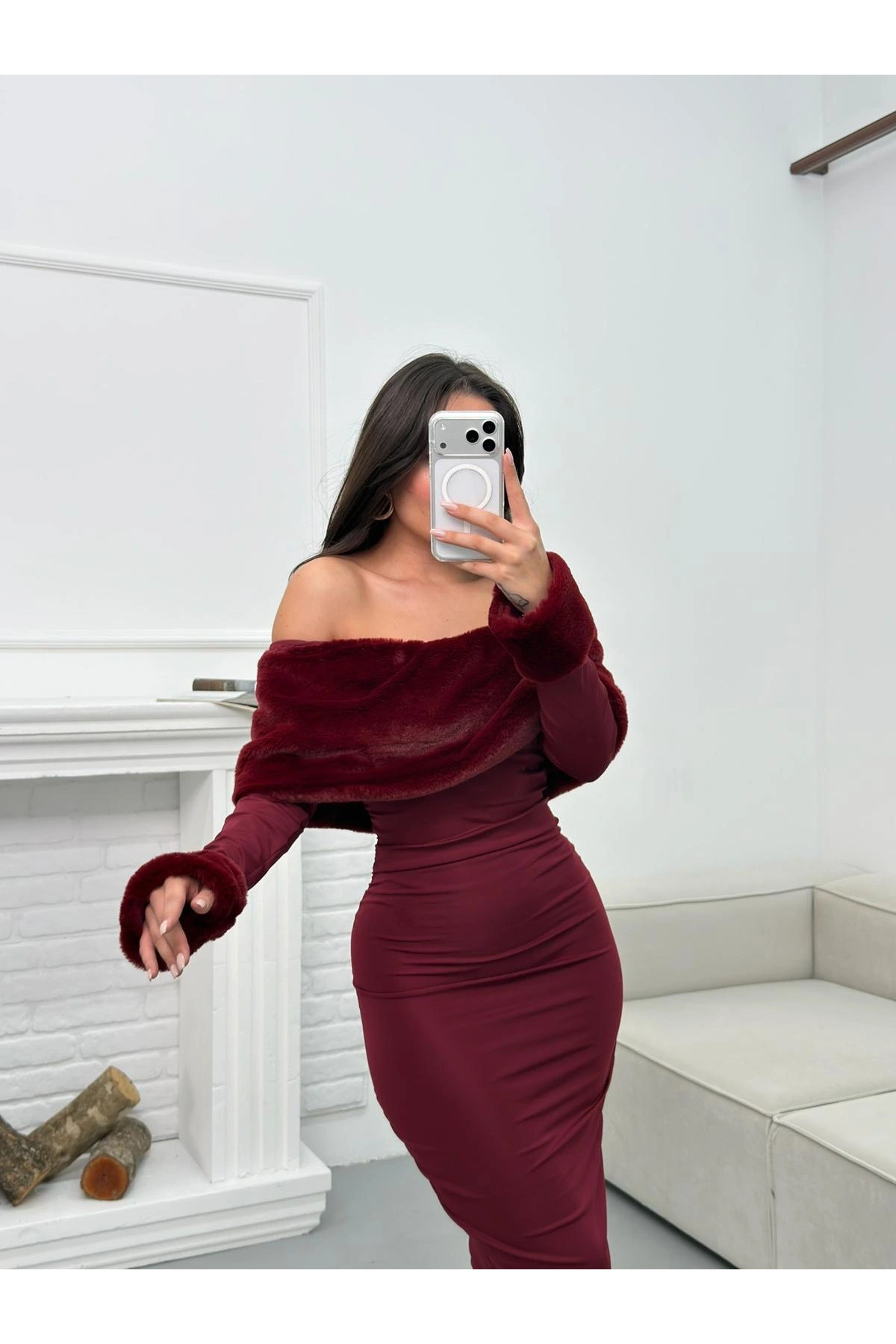 Madonna Yaka Kürklü Elbise - BORDO Madonna Yaka Kürklü Elbise - BORDO P19051S2540 L