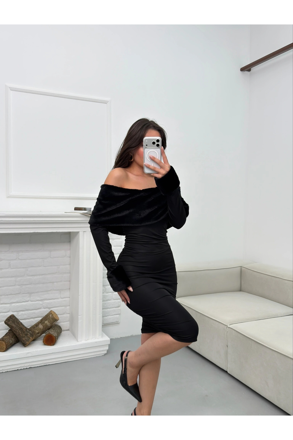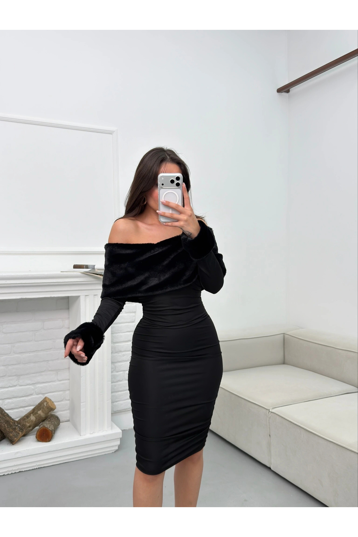 Madonna Yaka Kürklü Elbise - SİYAH Madonna Yaka Kürklü Elbise - SİYAH P19050S6595 L