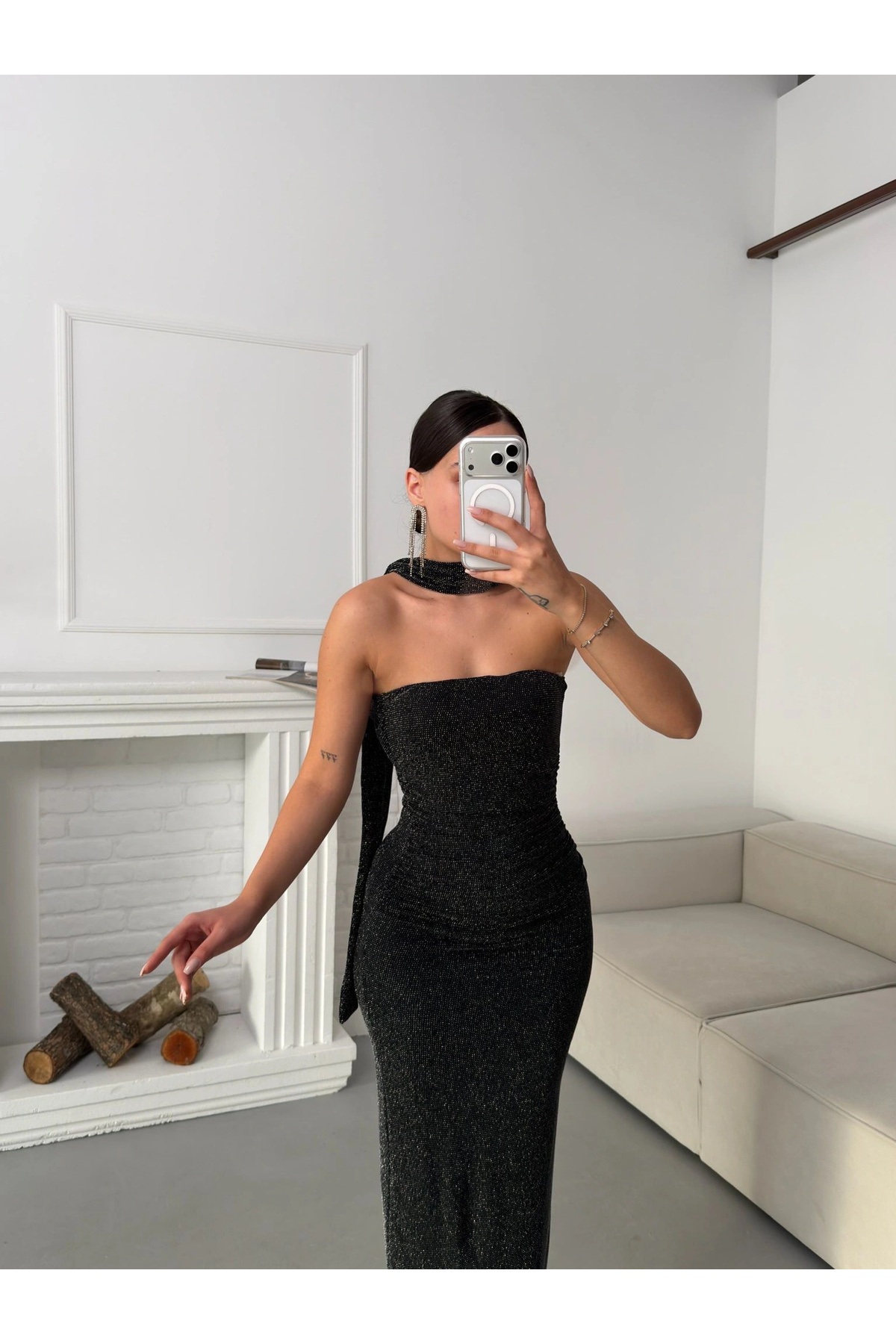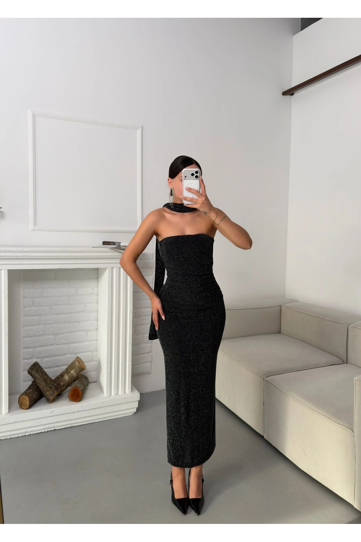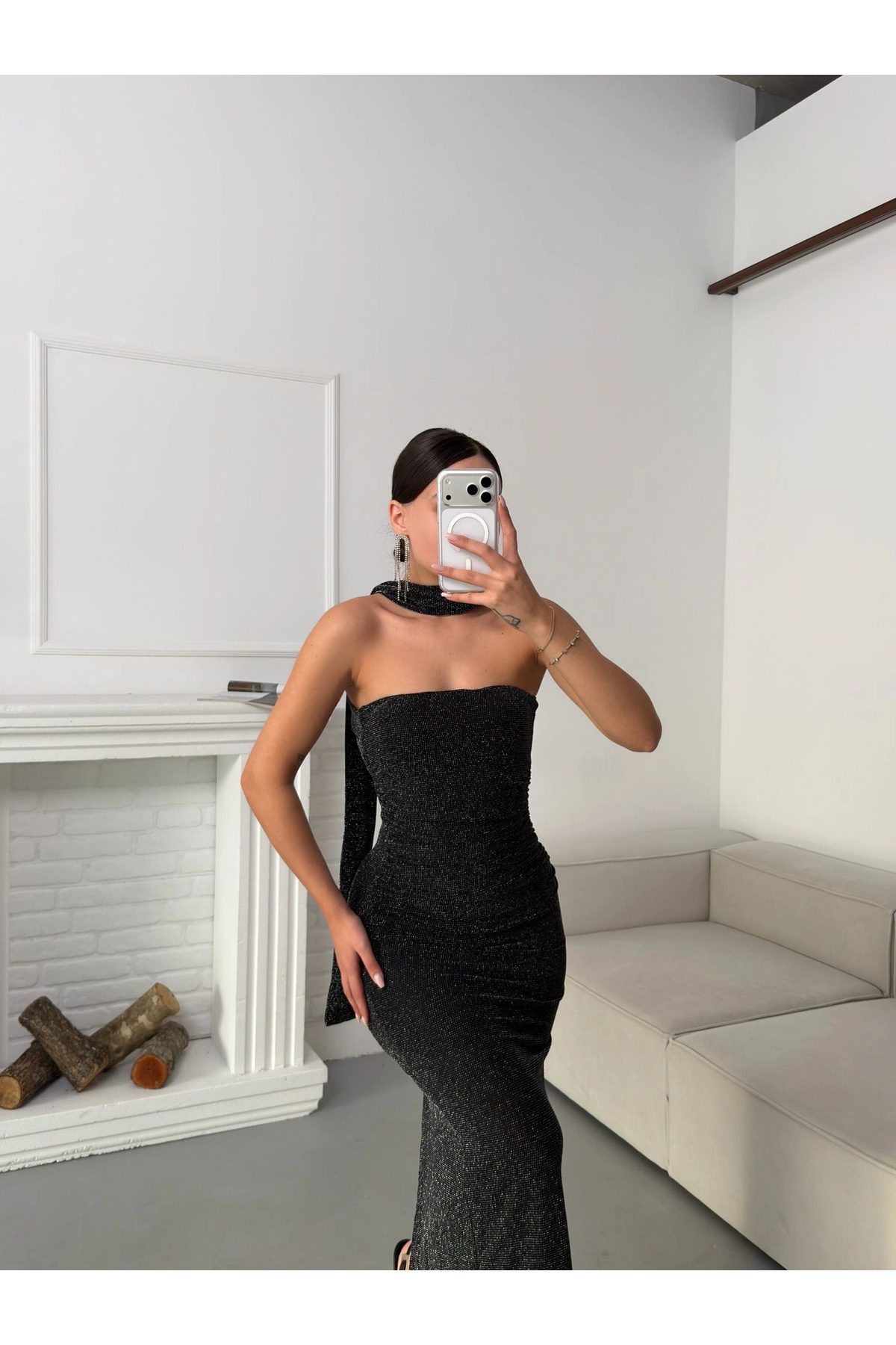 Kuşaklı Straplez Simli Elbise Kuşaklı Straplez Simli Elbise P19030S4603 L