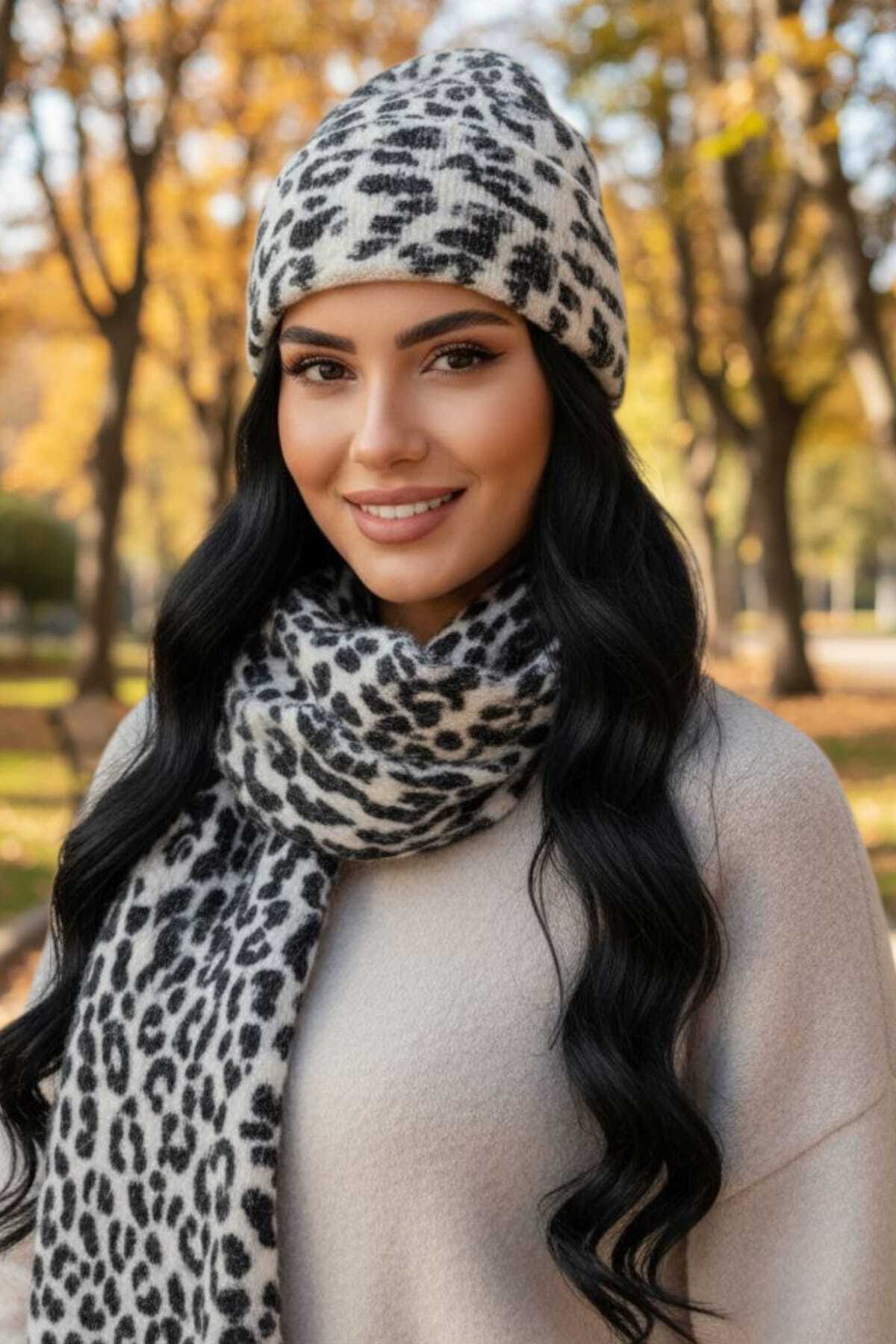 Kadın Premium Leopar Desenli Atkı Bere 2'Li Set Kadın Premium Leopar Desenli Atkı Bere 2'Li Set AKYZ-2600 تک سایز