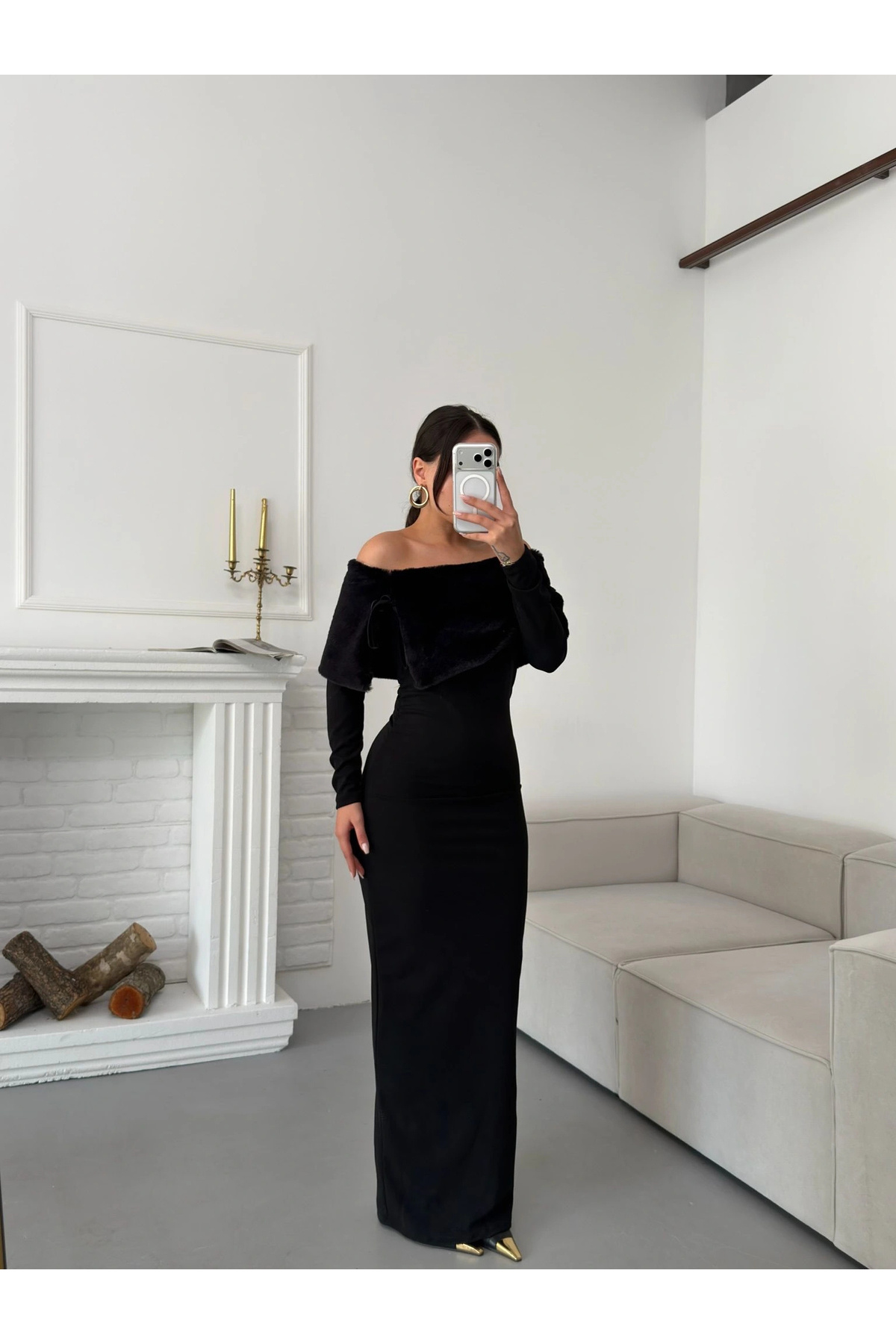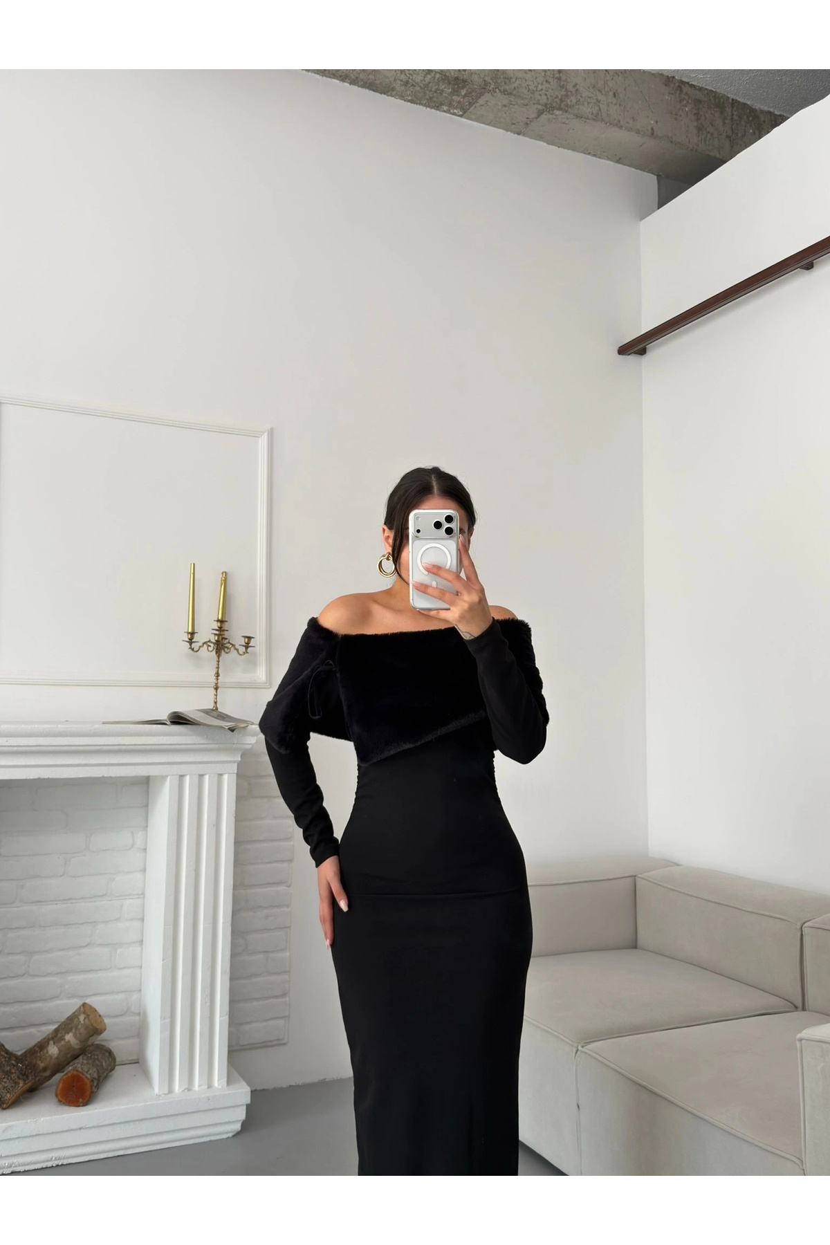 Kürklü Madonna Elbise - SİYAH Kürklü Madonna Elbise - SİYAH P18989S6467