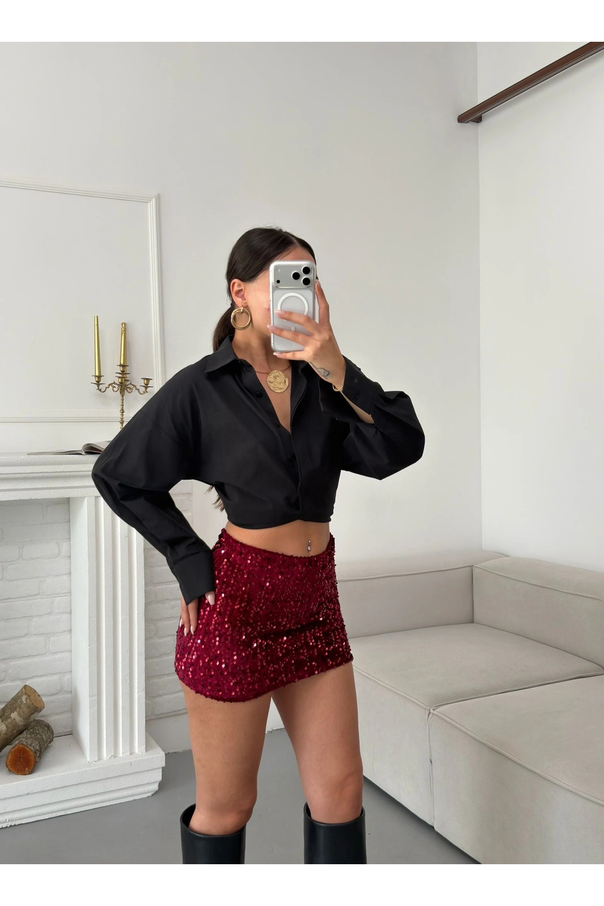 Payetli Şort Etek - BORDO Payetli Şort Etek - BORDO P18979S3695 L