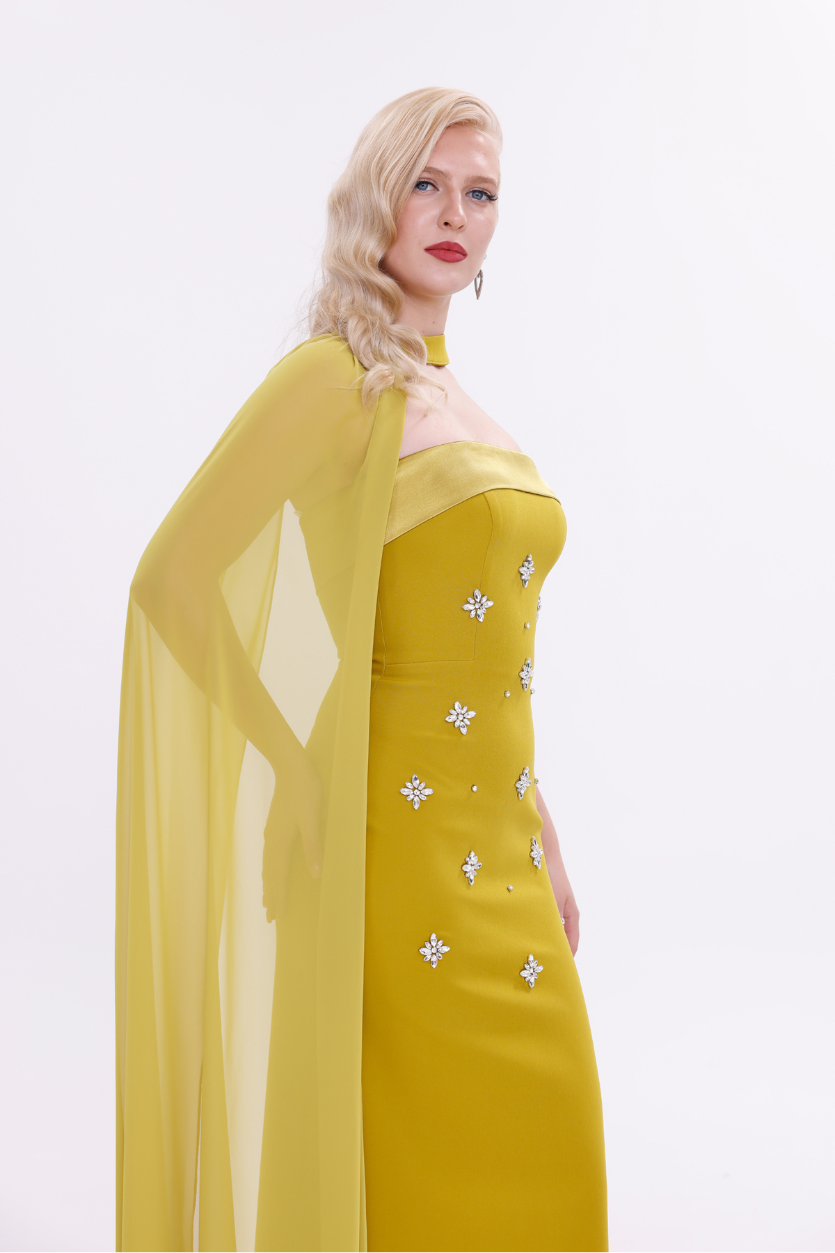 Straplez Taş İşlemeli Pelerinli Premium Abiye Elbise Straplez Taş İşlemeli Pelerinli Premium Abiye Elbise 0407 42