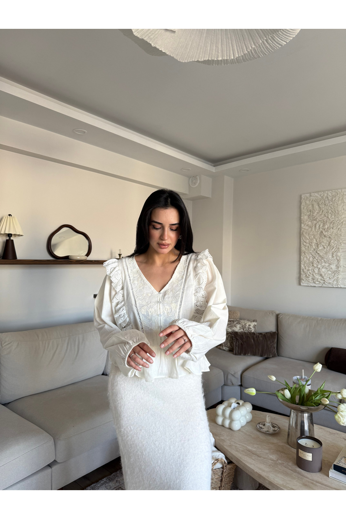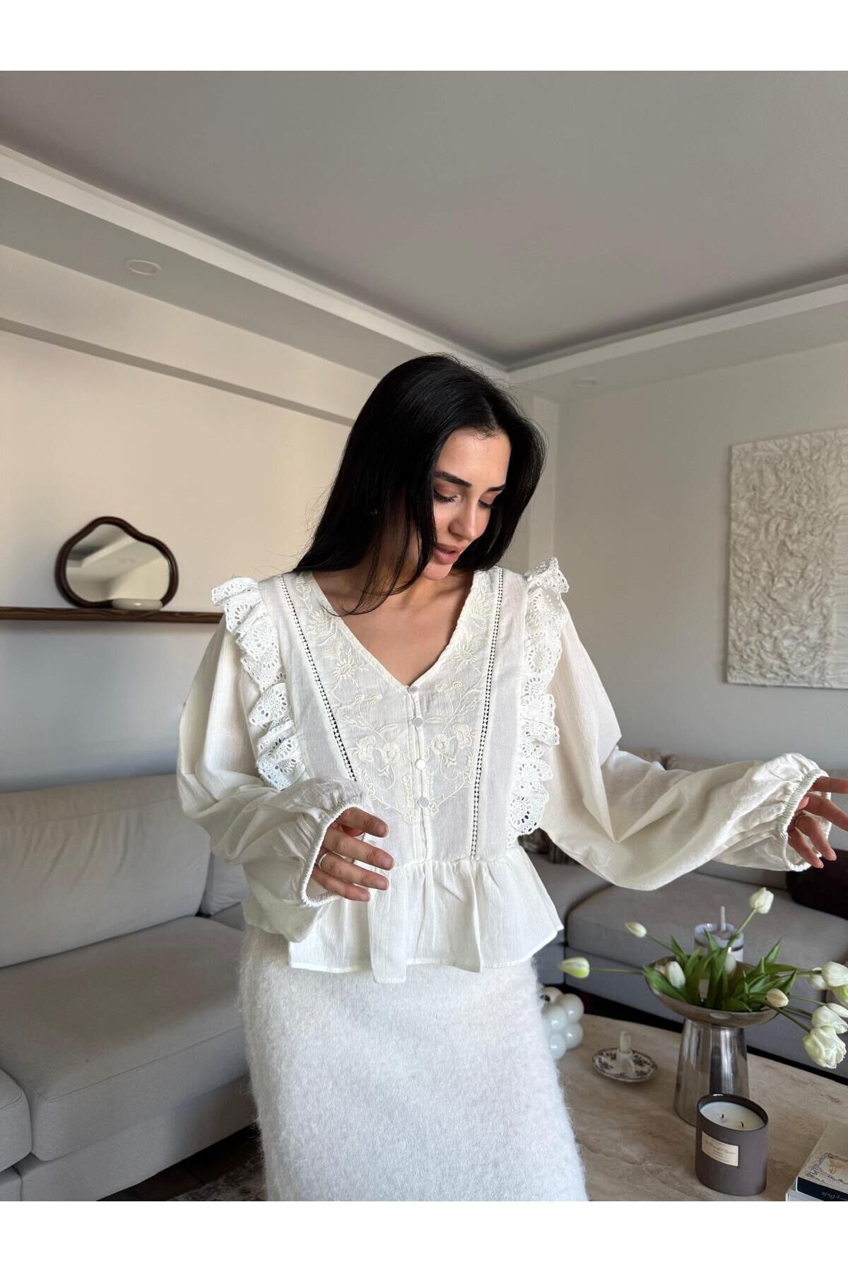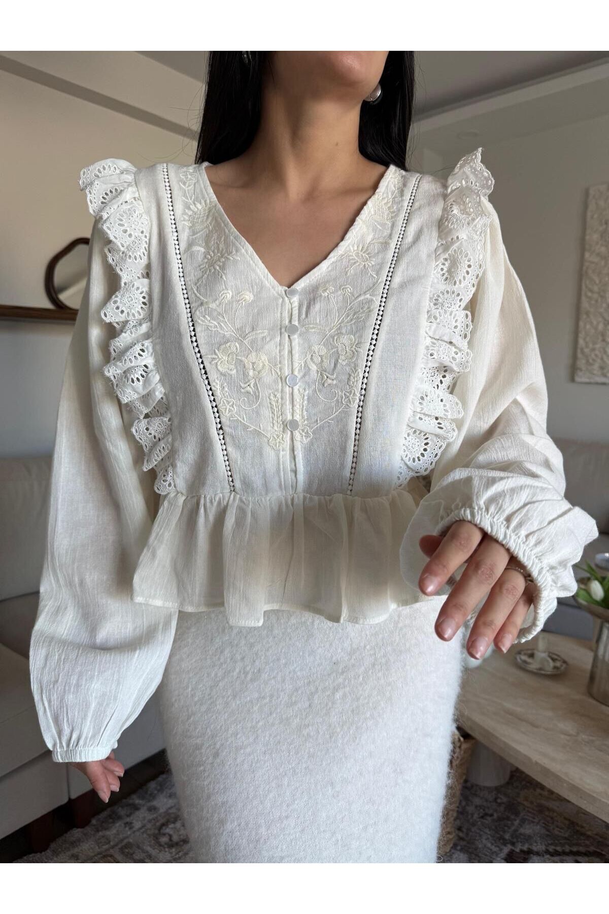 Vintage düğmeli bluz-Beyaz - M Vintage düğmeli bluz-Beyaz - M PUANSLTSFK L