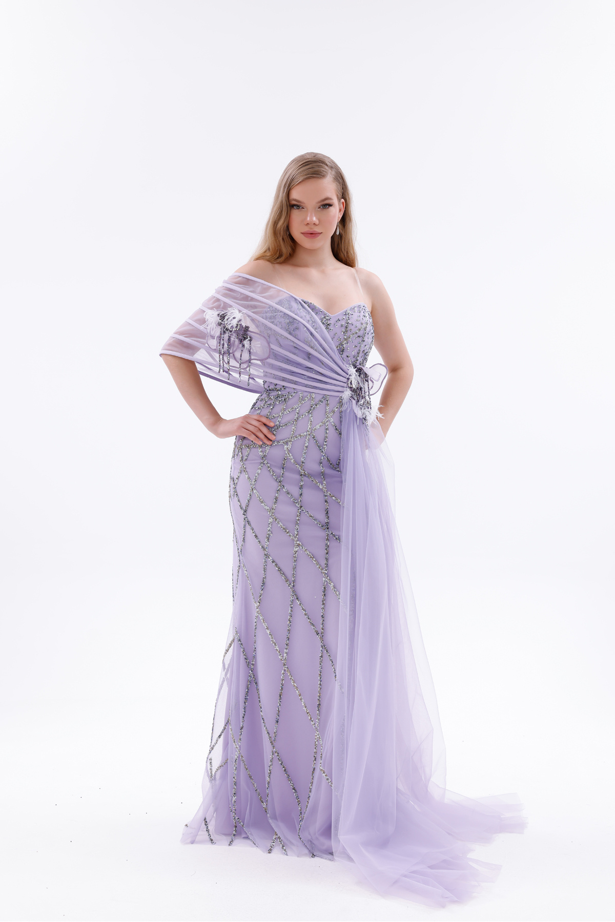 Tek Omuz Tül Drapeli Kristal İşlemeli Yırtmaçlı Mavi Şifon Abiye Elbise Tek Omuz Tül Drapeli Kristal İşlemeli Yırtmaçlı Mavi Şifon Abiye Elbise 0272 44