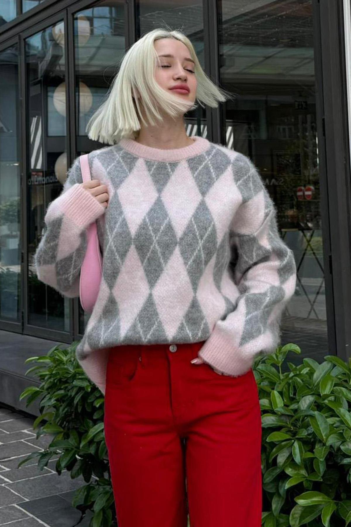 Basic Oversize Bisiklet Yaka Triko Kazak AW25KZ0113 Basic Oversize Bisiklet Yaka Triko Kazak AW25KZ0113 S/M