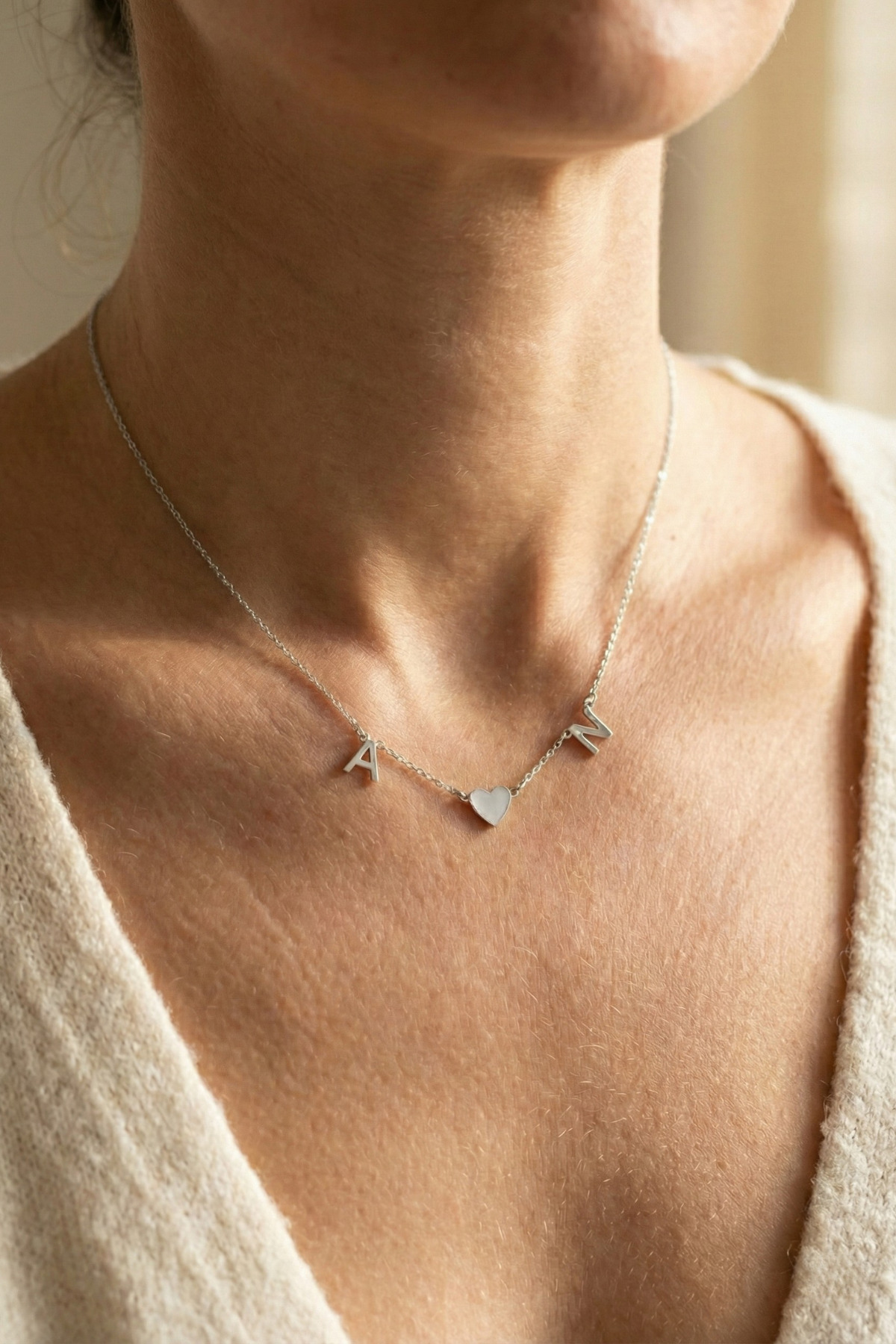 925 Ayar Gümüş Kişiye Özel 2 Harfli Kalpli Gümüş Kolye 925 Ayar Gümüş Kişiye Özel 2 Harfli Kalpli Gümüş Kolye neshely-Rex-35 60 cm