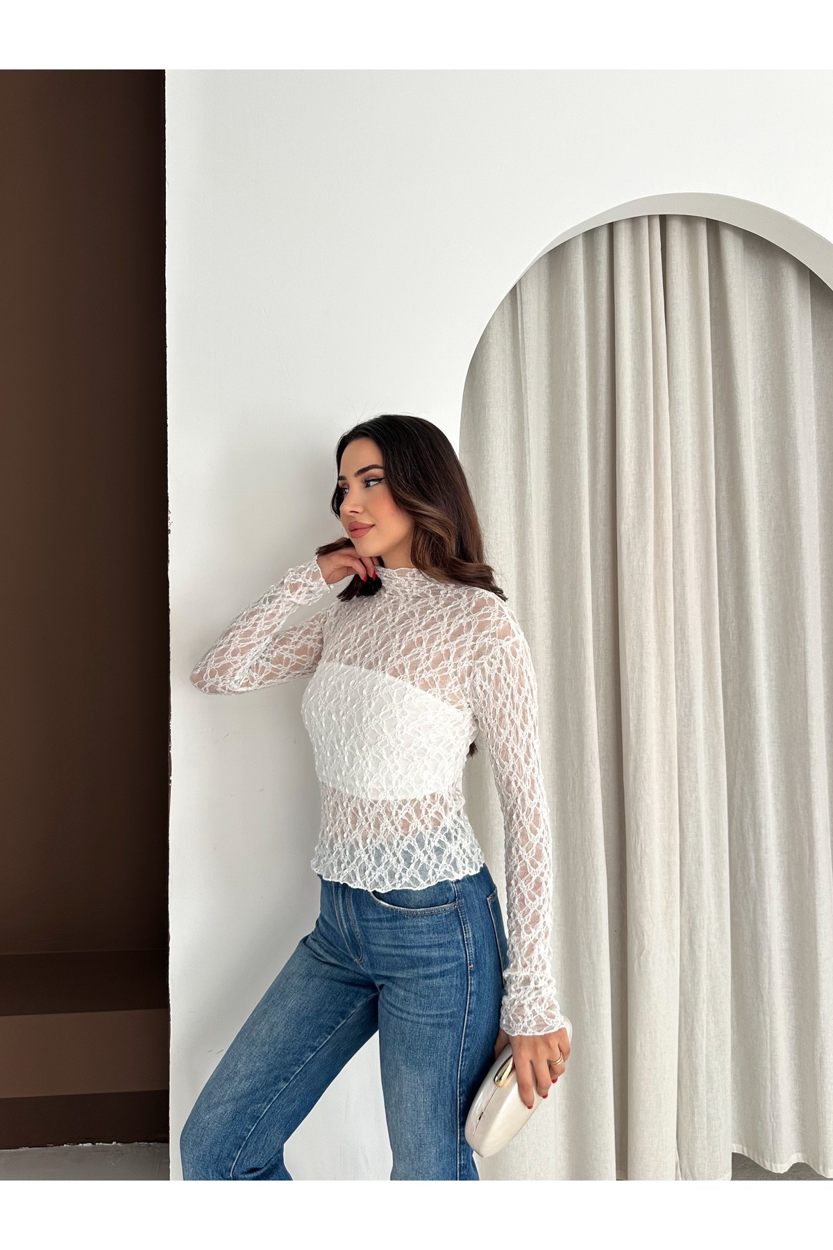 Taşlı tül bluz Taşlı tül bluz ET267899000 L