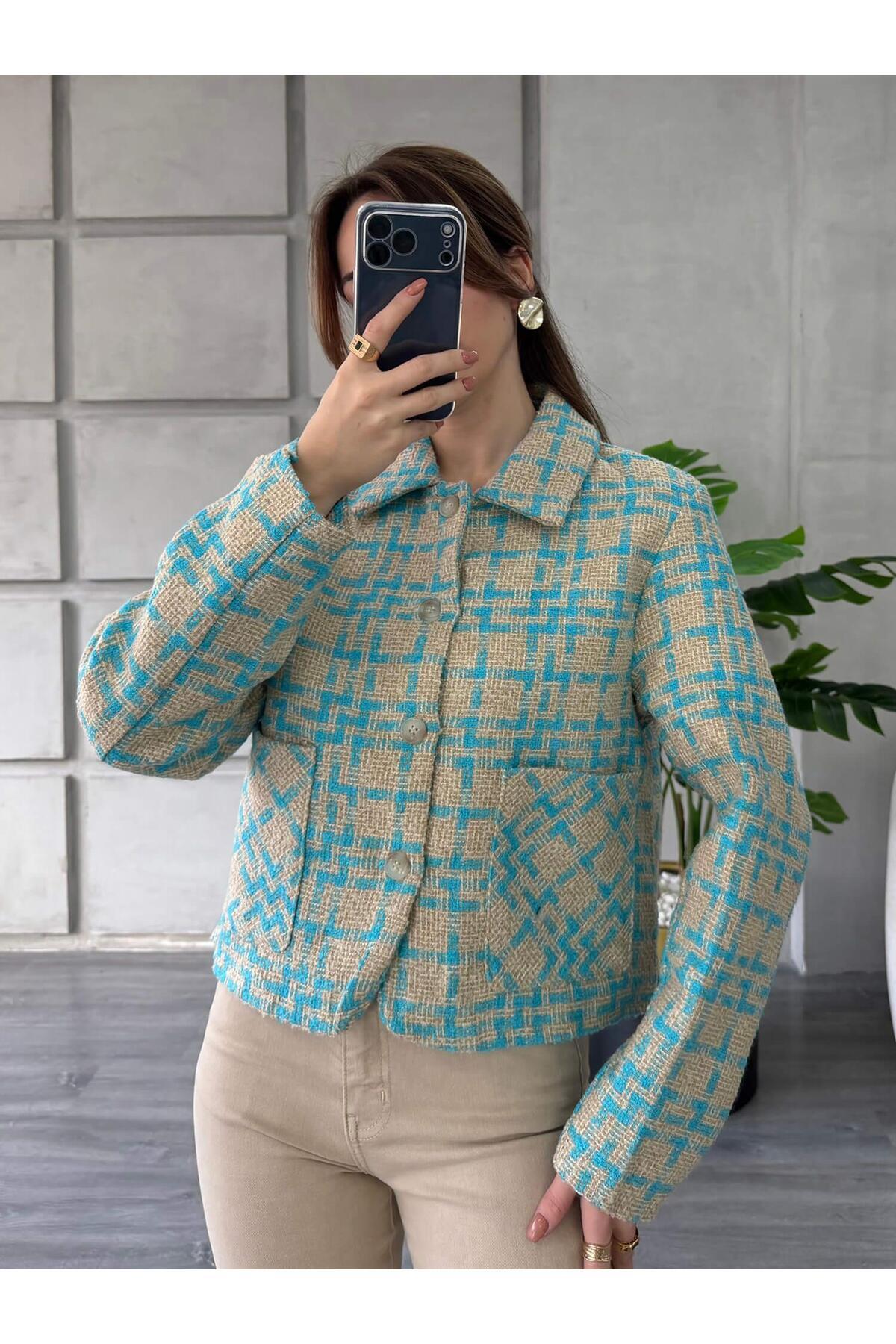Kareli Kaşe Ceket 0253 Turkuaz Kareli Kaşe Ceket 0253 Turkuaz W25W-FLW-00062 L