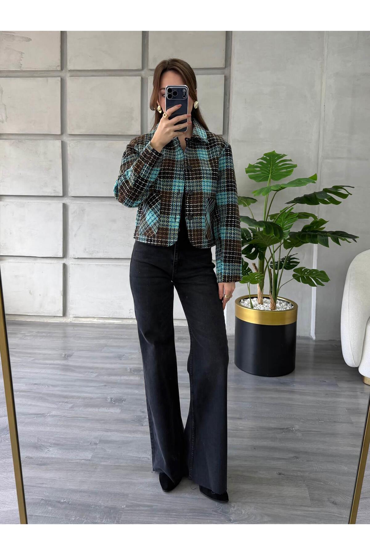 Kareli Kaşe Ceket 0253 Mavi - Siyah Kareli Kaşe Ceket 0253 Mavi - Siyah W25W-FLW-00062 L