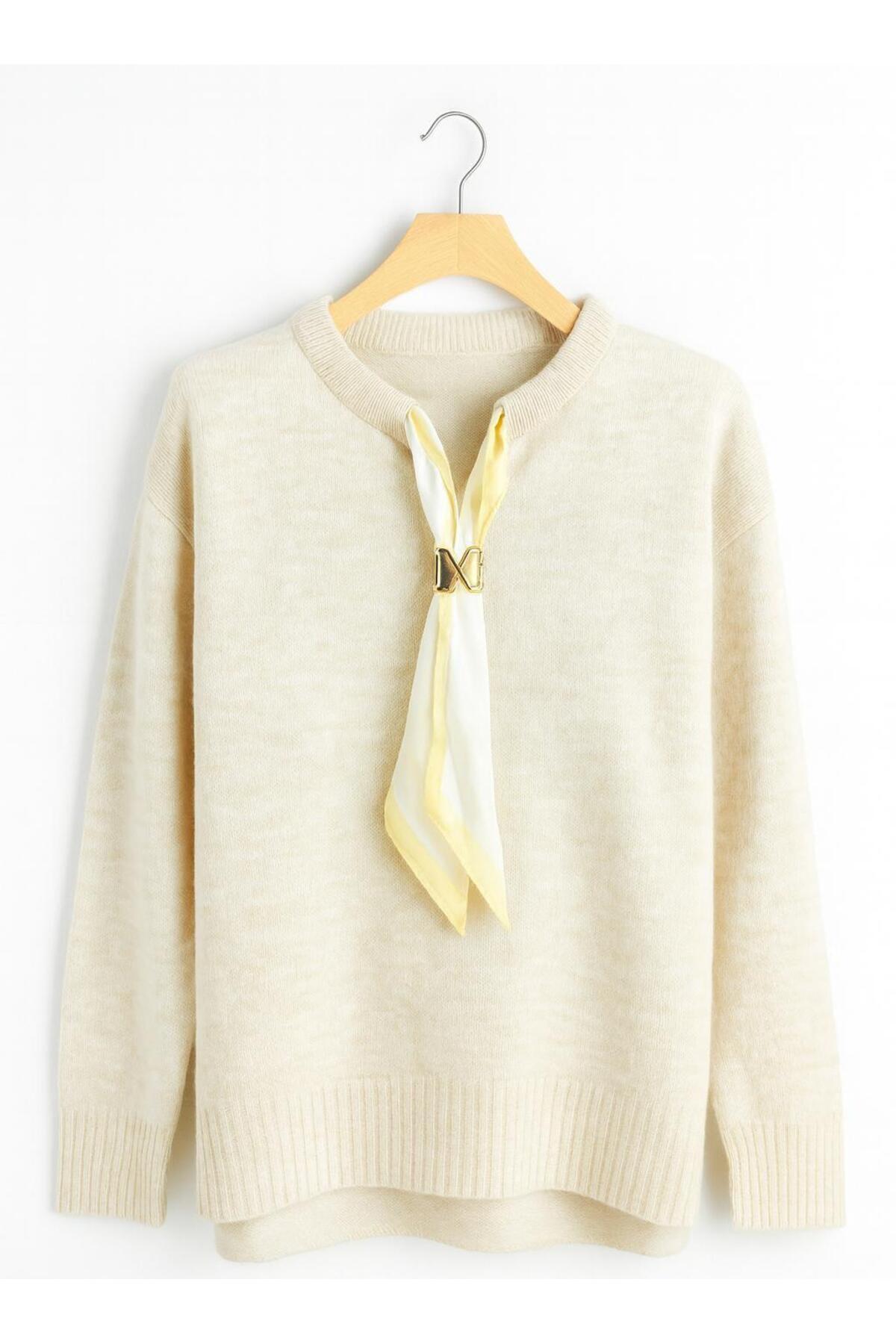 FULARLI,YIRTMAÇLI ŞARDONLU KADIN TRİKO KAZAK FULARLI,YIRTMAÇLI ŞARDONLU KADIN TRİKO KAZAK ÖZGFLARLIYRTMCLKZK2026 XL