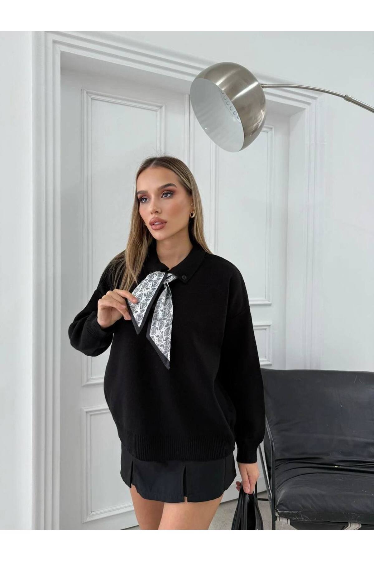 FULARLI,YIRTMAÇLI ŞARDONLU KADIN TRİKO KAZAK FULARLI,YIRTMAÇLI ŞARDONLU KADIN TRİKO KAZAK ÖZGFLARLIYRTMCLKZK2026 XL