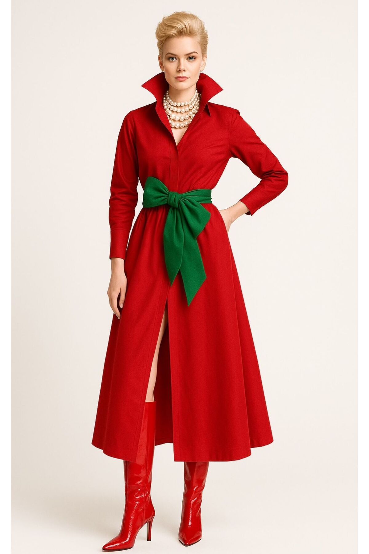 Manşet Kısmı Bağlama Detaylı Kırmızı Maxi Boy Tafta Gömlek Elbise Manşet Kısmı Bağlama Detaylı Kırmızı Maxi Boy Tafta Gömlek Elbise ANY-070 50