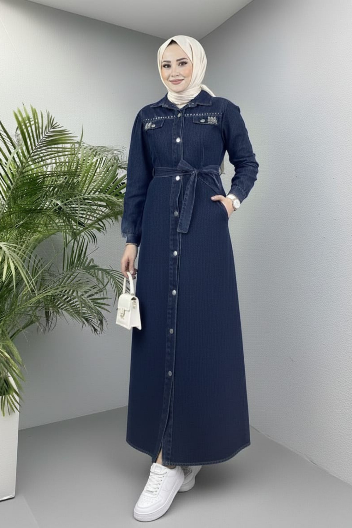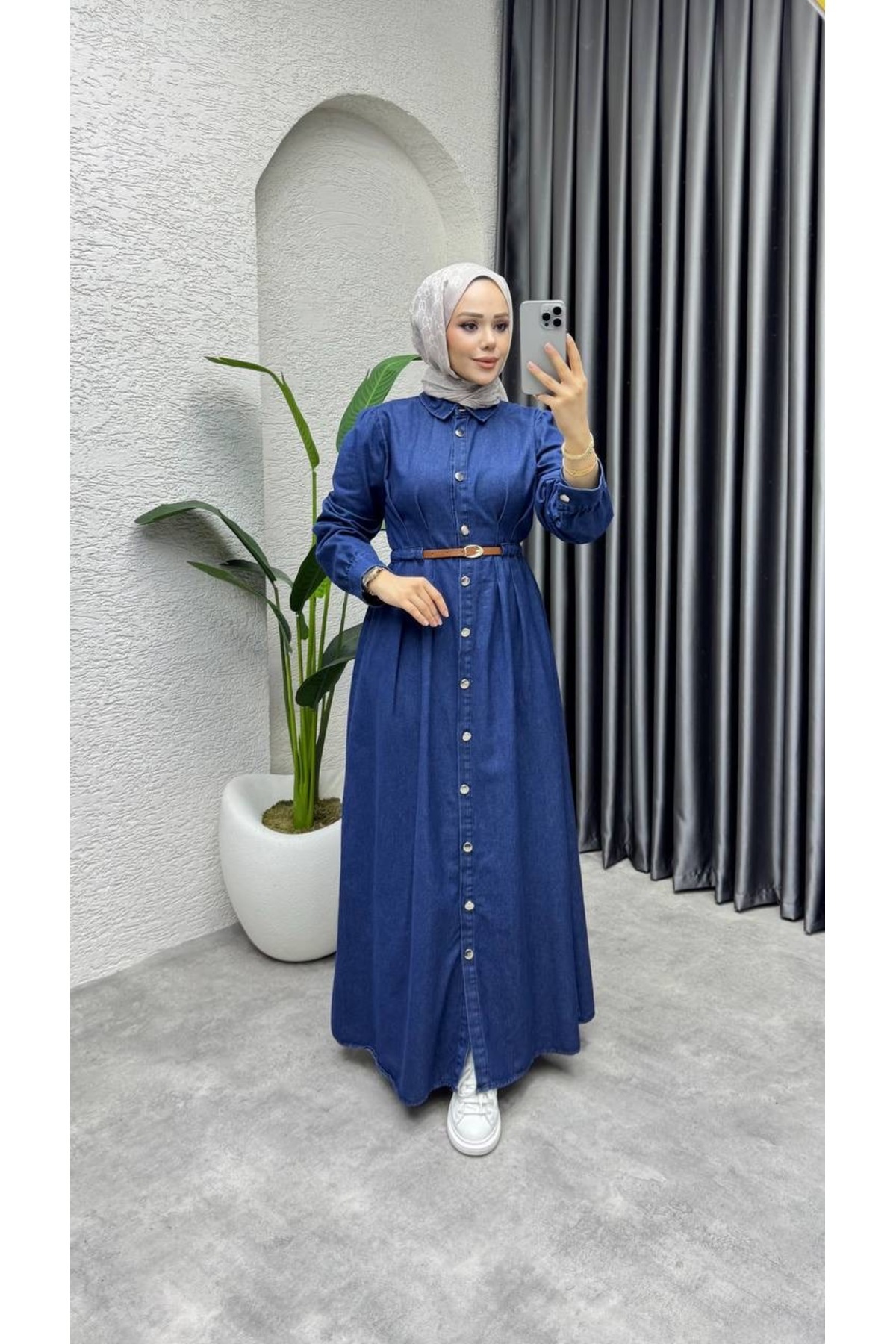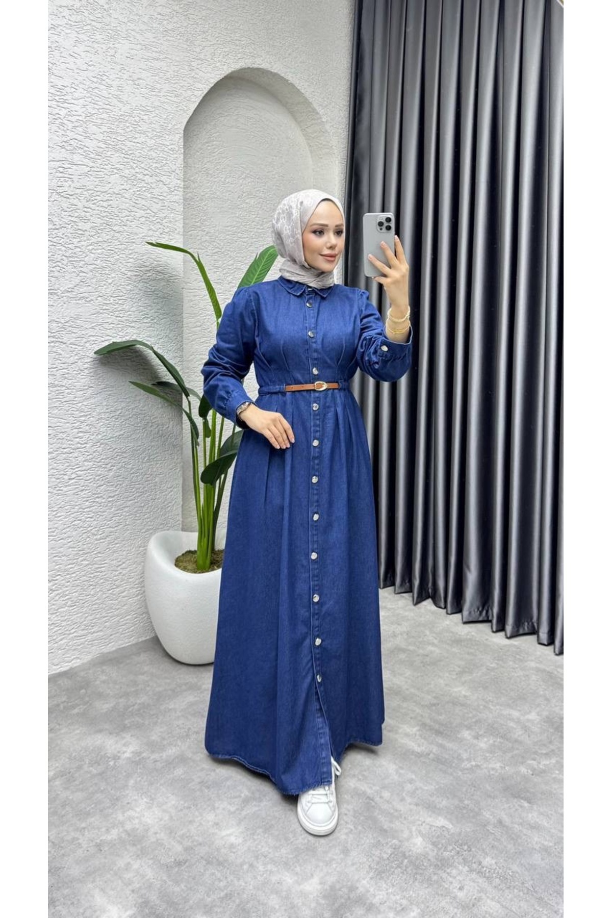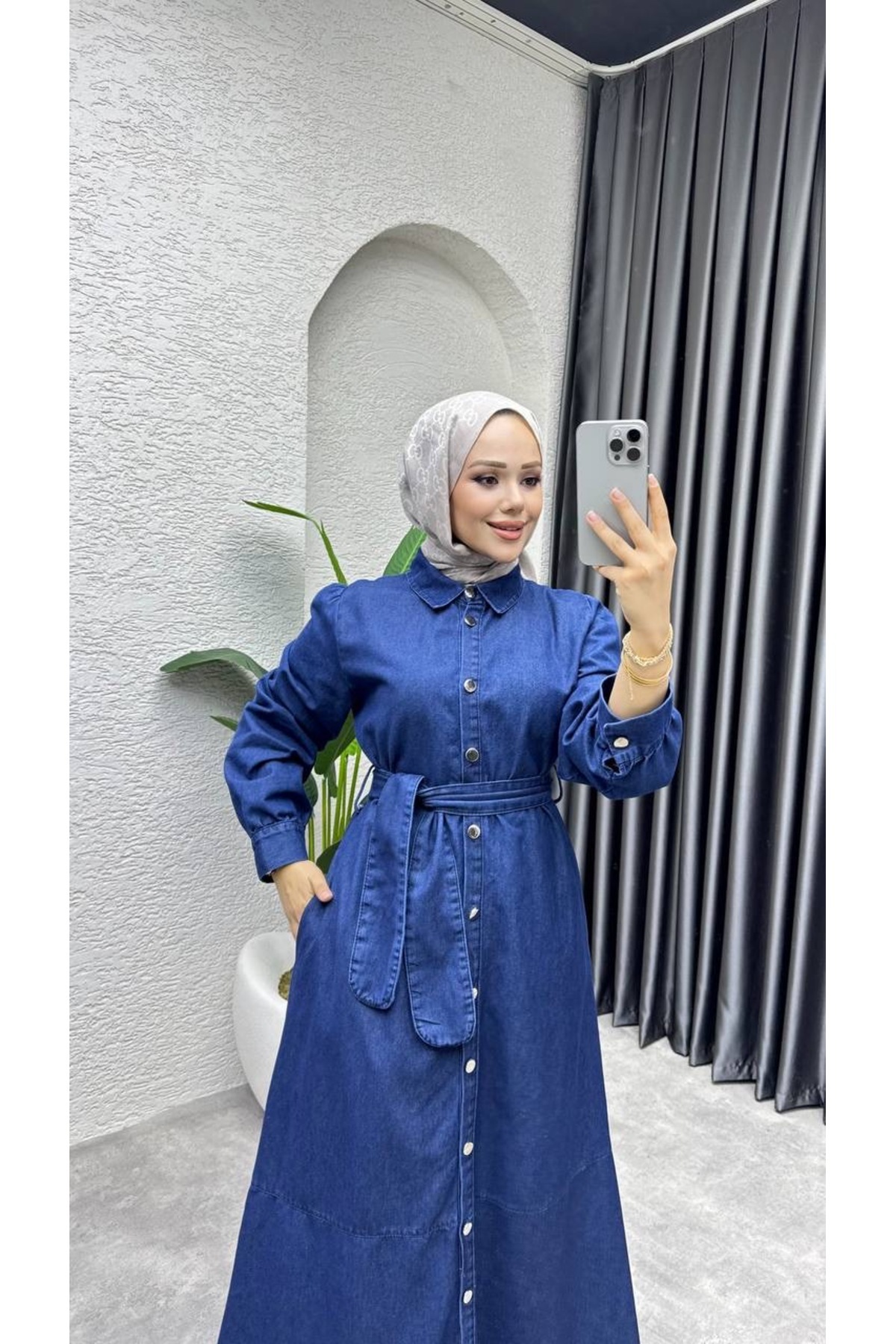 MLT120 Bel Kemerli Kalın Kot Denim Elbise MLT120 Bel Kemerli Kalın Kot Denim Elbise 46