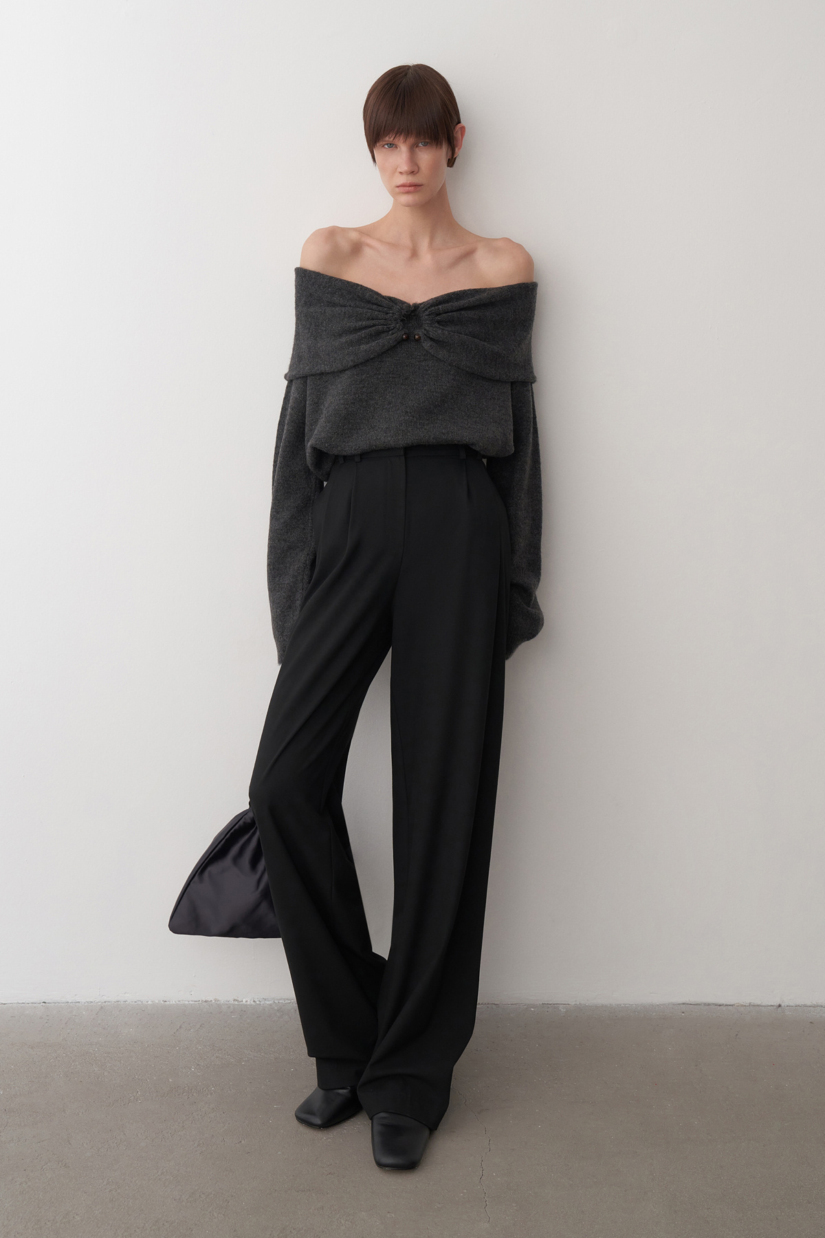 Antrasit Kayık Yaka Aksesuar Detaylı Kazak Antrasit Kayık Yaka Aksesuar Detaylı Kazak MTHM024KK Standart