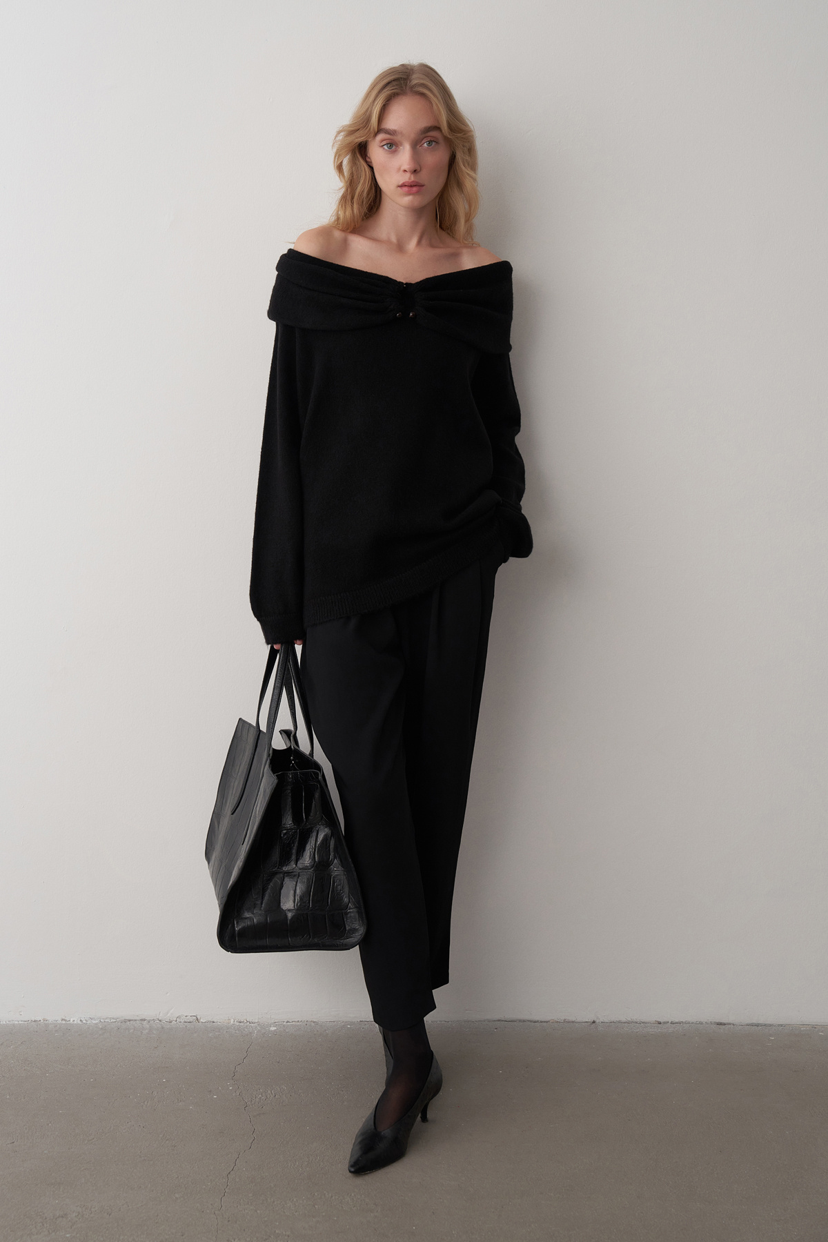 Siyah Kayık Yaka Aksesuar Detaylı Kazak Siyah Kayık Yaka Aksesuar Detaylı Kazak MTHM024KK Standart
