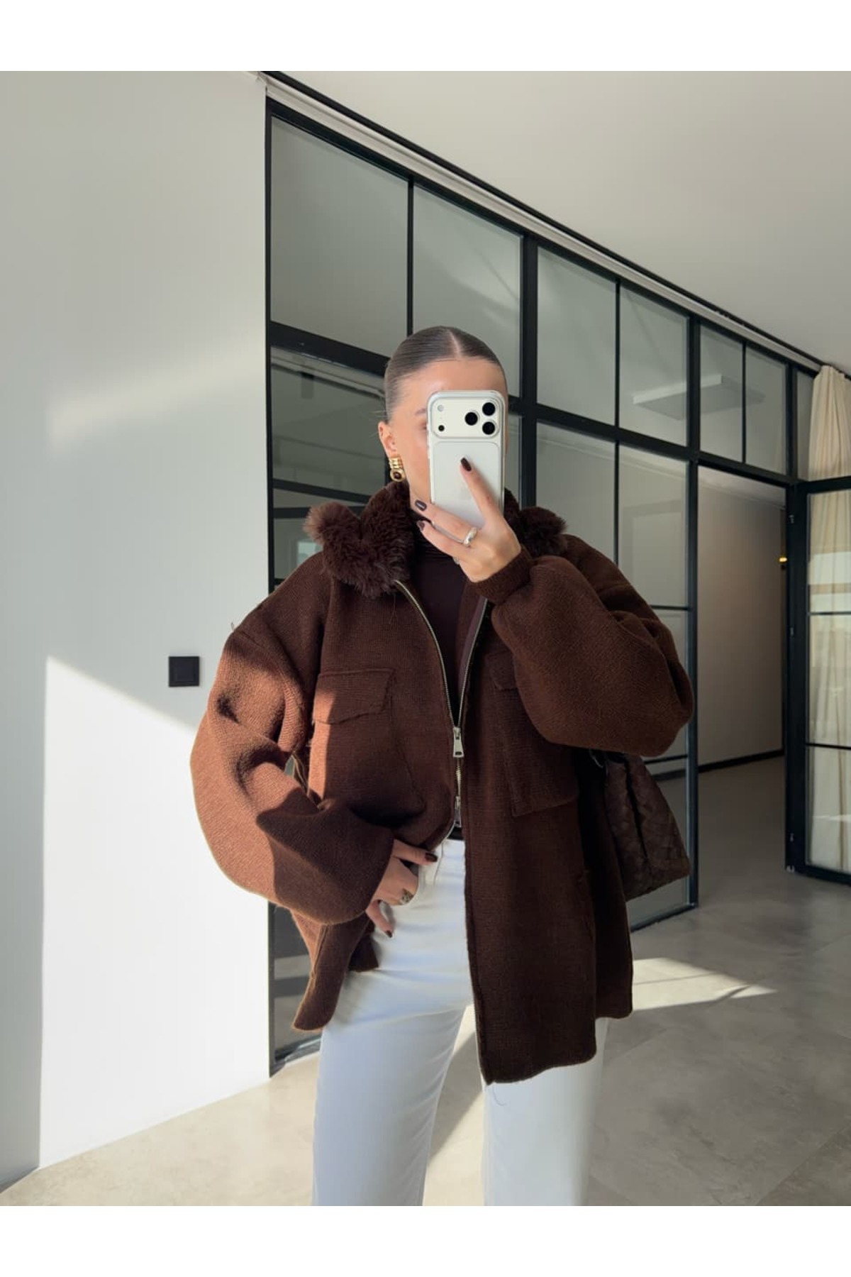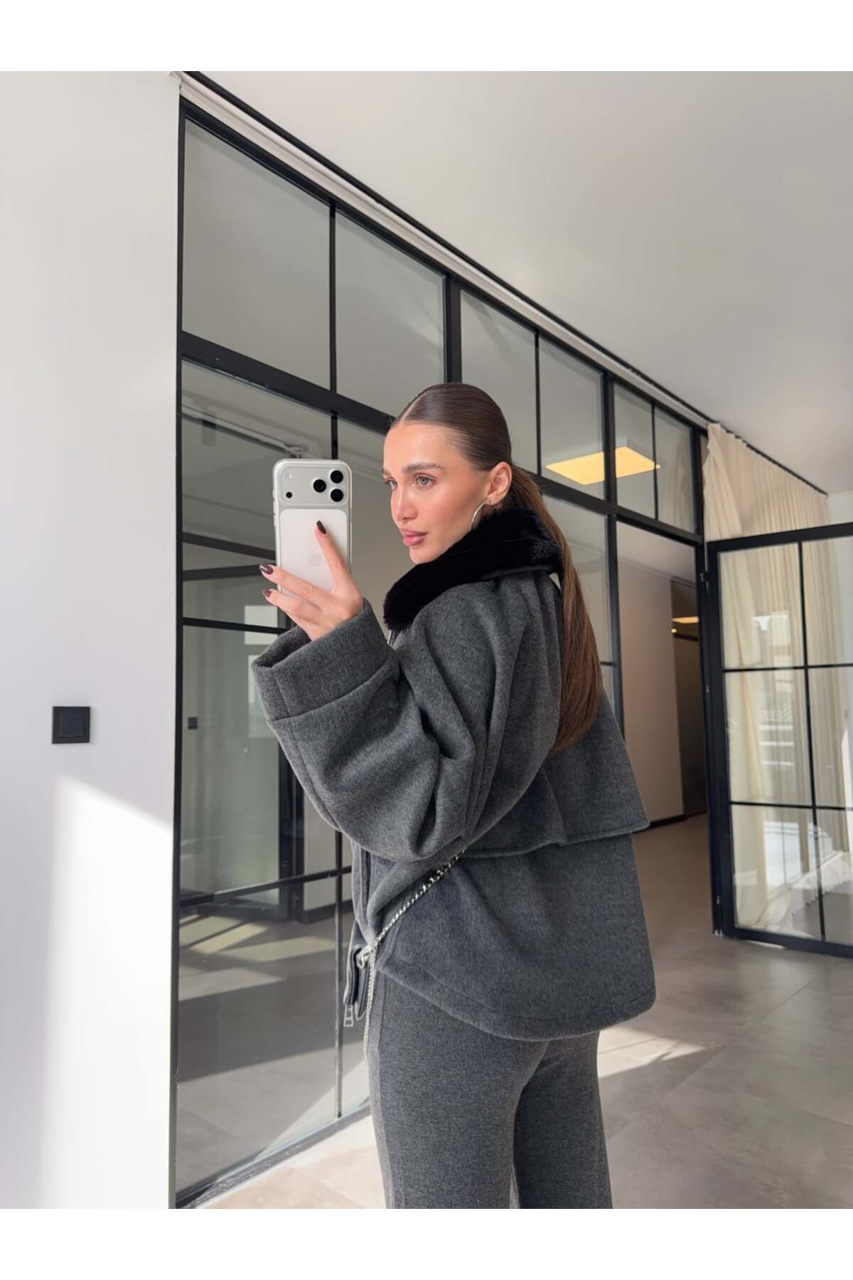 YAKASI KÜRKLÜ KAŞE CEKET YAKASI KÜRKLÜ KAŞE CEKET 25K-PRY-9660_ANTRASİT_STD Standart