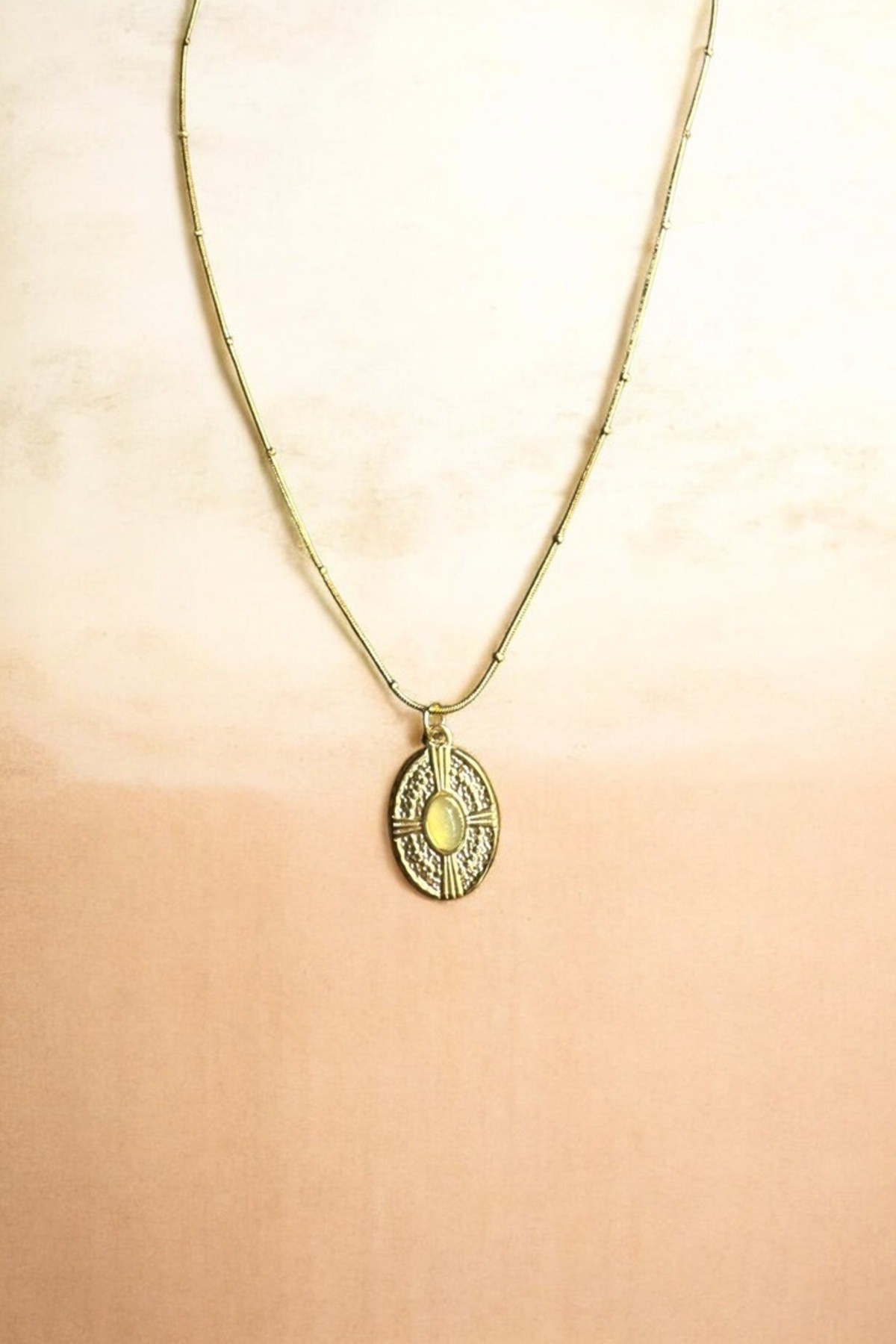 Yeşil Taşlı Elips Şeklinde Altın Renkli Çelik Kolye Yeşil Taşlı Elips Şeklinde Altın Renkli Çelik Kolye KL0017 40 cm