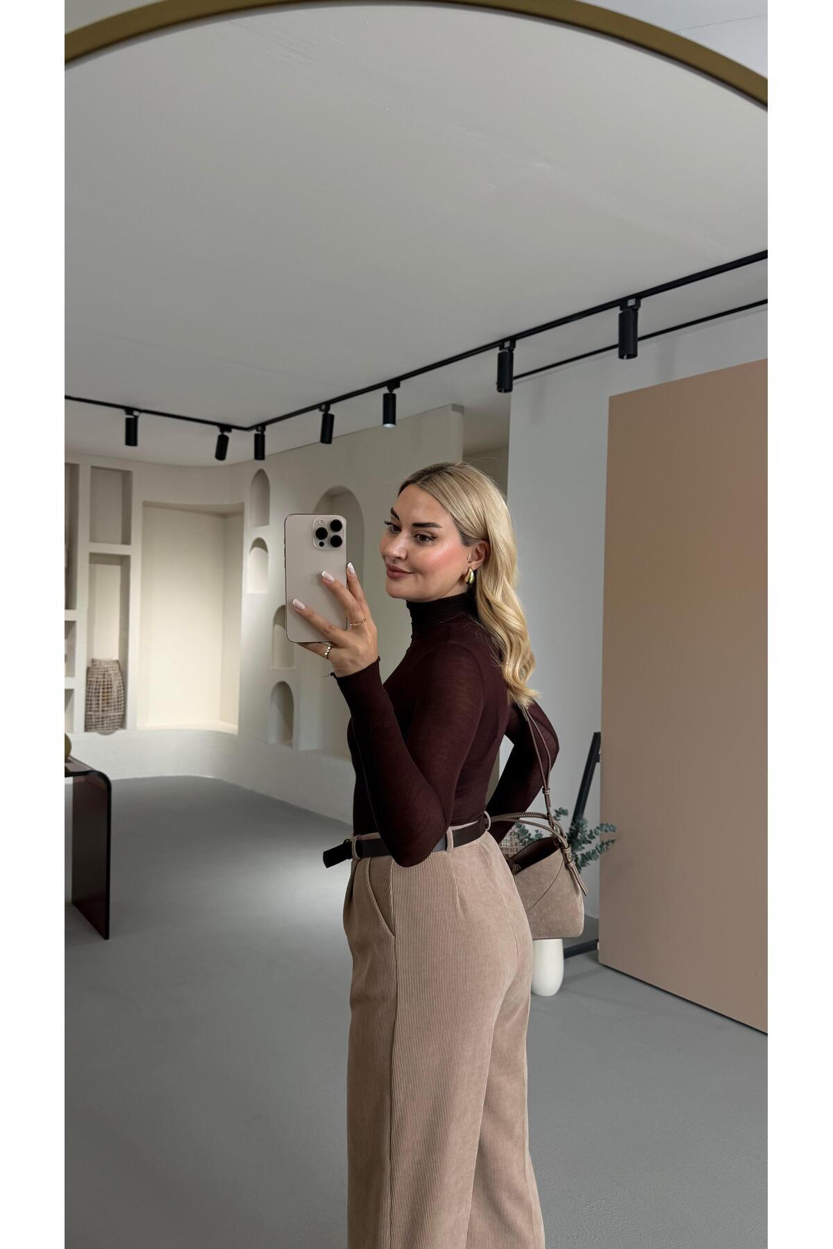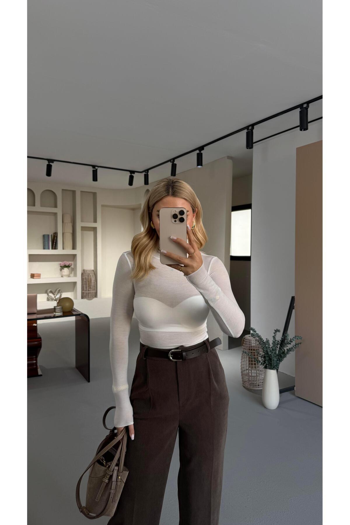 Balıkçı Yaka Kahve Transparan Bluz Balıkçı Yaka Kahve Transparan Bluz BLZ-0227-KHV L