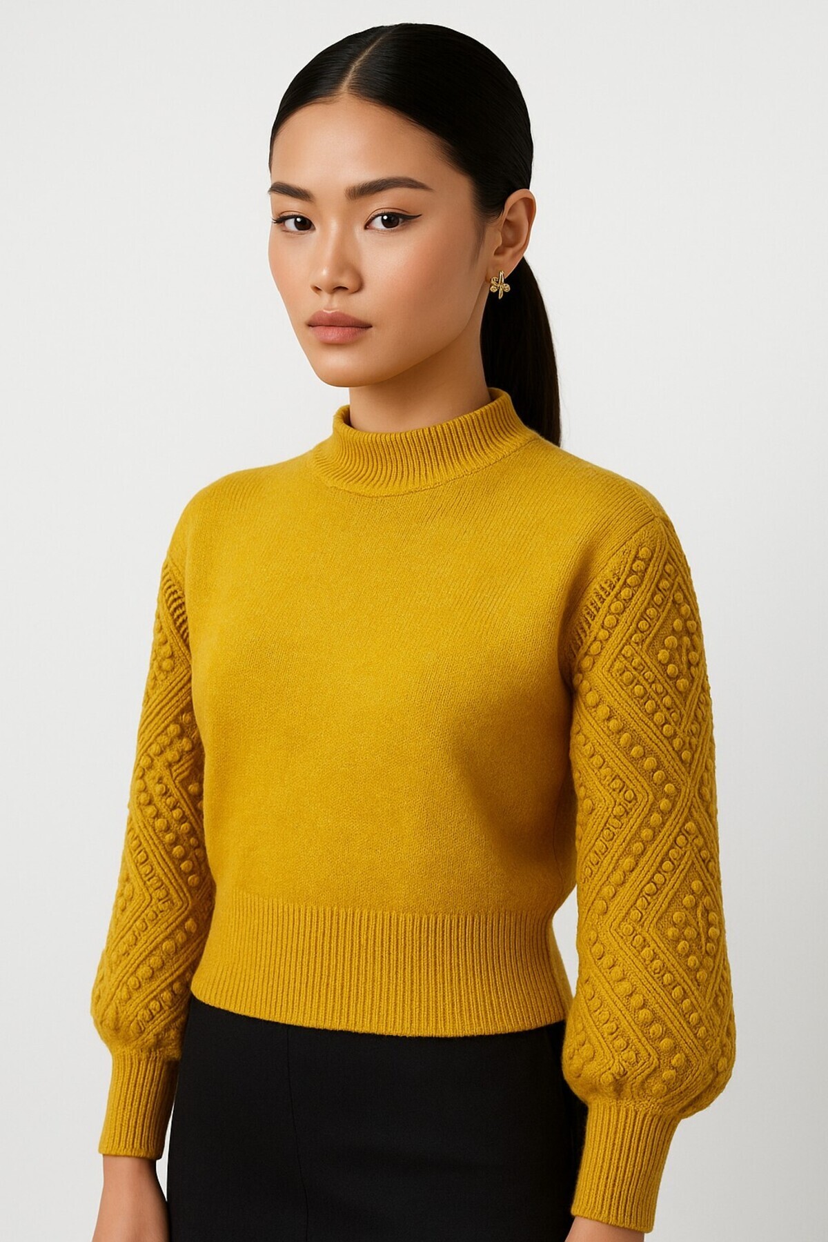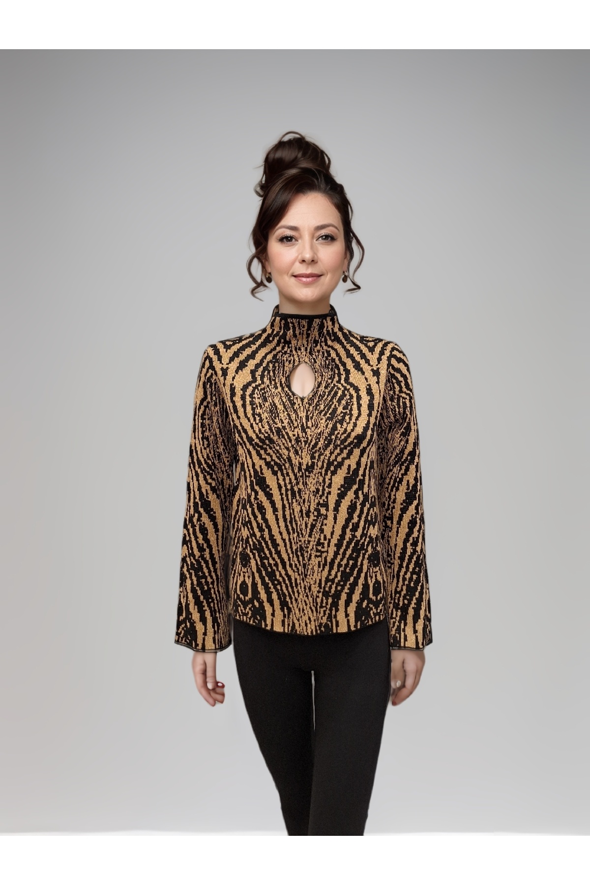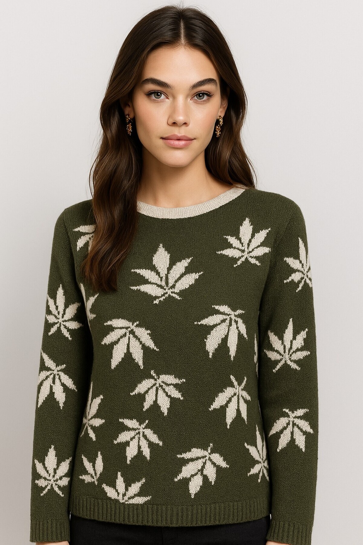 Yaprak Desenli Bisiklet Yaka Triko-25K43782-HARDAL-23 Yaprak Desenli Bisiklet Yaka Triko-25K43782-HARDAL-23 42