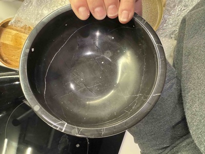 EL YAPIMI DEKORATIF MERMER TAŞLI BRONZ DESENLİ KASE EL YAPIMI DEKORATIF MERMER TAŞLI BRONZ DESENLİ KASE MS44B تک سایز