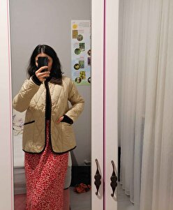 Kadife Detaylı Polo Yaka Kapitone Mont Kadife Detaylı Polo Yaka Kapitone Mont 26KGB1499138590 XL