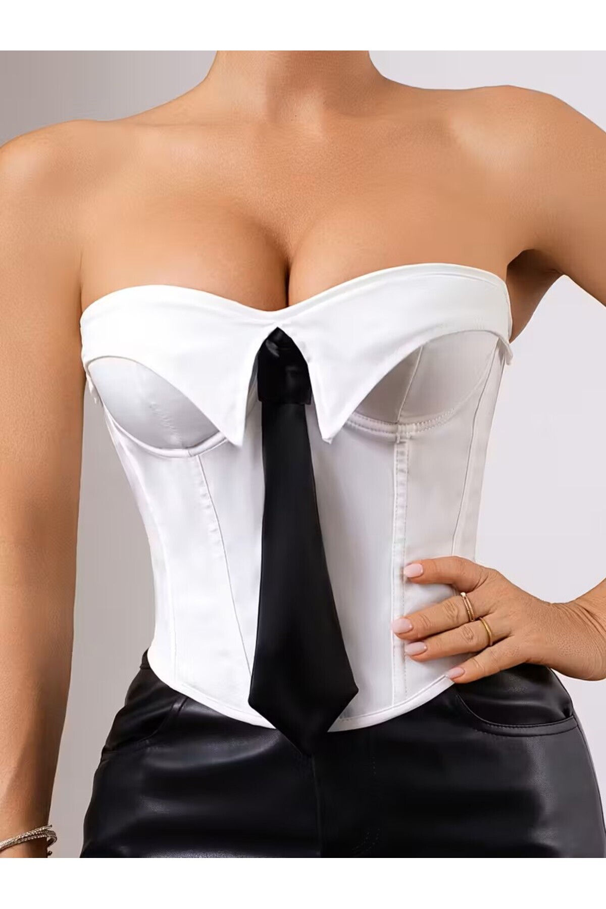 Şık Kravat Aksesuarlı Gömlek Yaka Korse - Ofis Giyim Büstiyer Şık Kravat Aksesuarlı Gömlek Yaka Korse - Ofis Giyim Büstiyer OfisKorse L