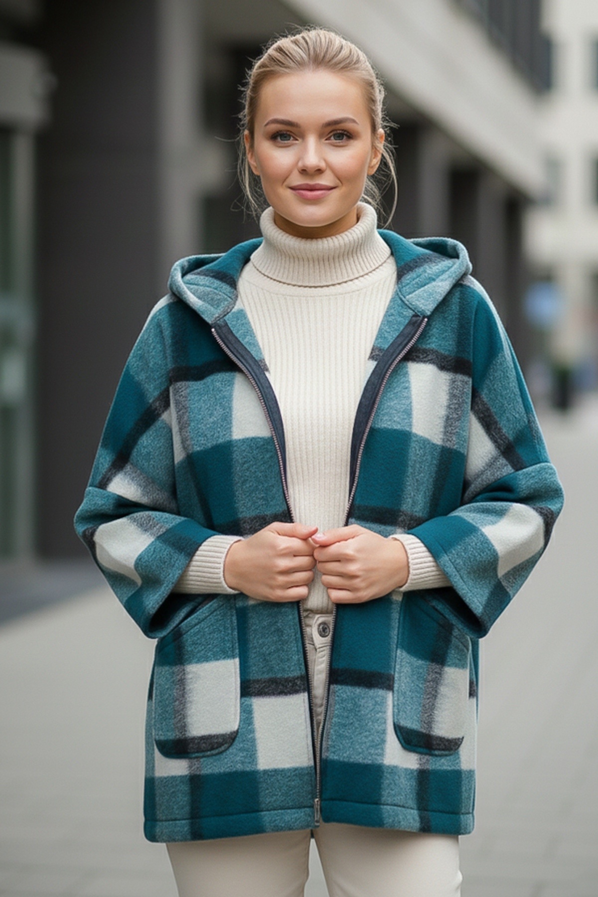 İtalyan Yeşil Kapüşonlu Uzun Kol Ekose Fermuarlı Cepli Casual Yün Oversize Dokuma Ceket 75 80 İtalyan Yeşil Kapüşonlu Uzun Kol Ekose Fermuarlı Cepli Casual Yün Oversize Dokuma Ceket 75 80 M10210100CE97896 Standart