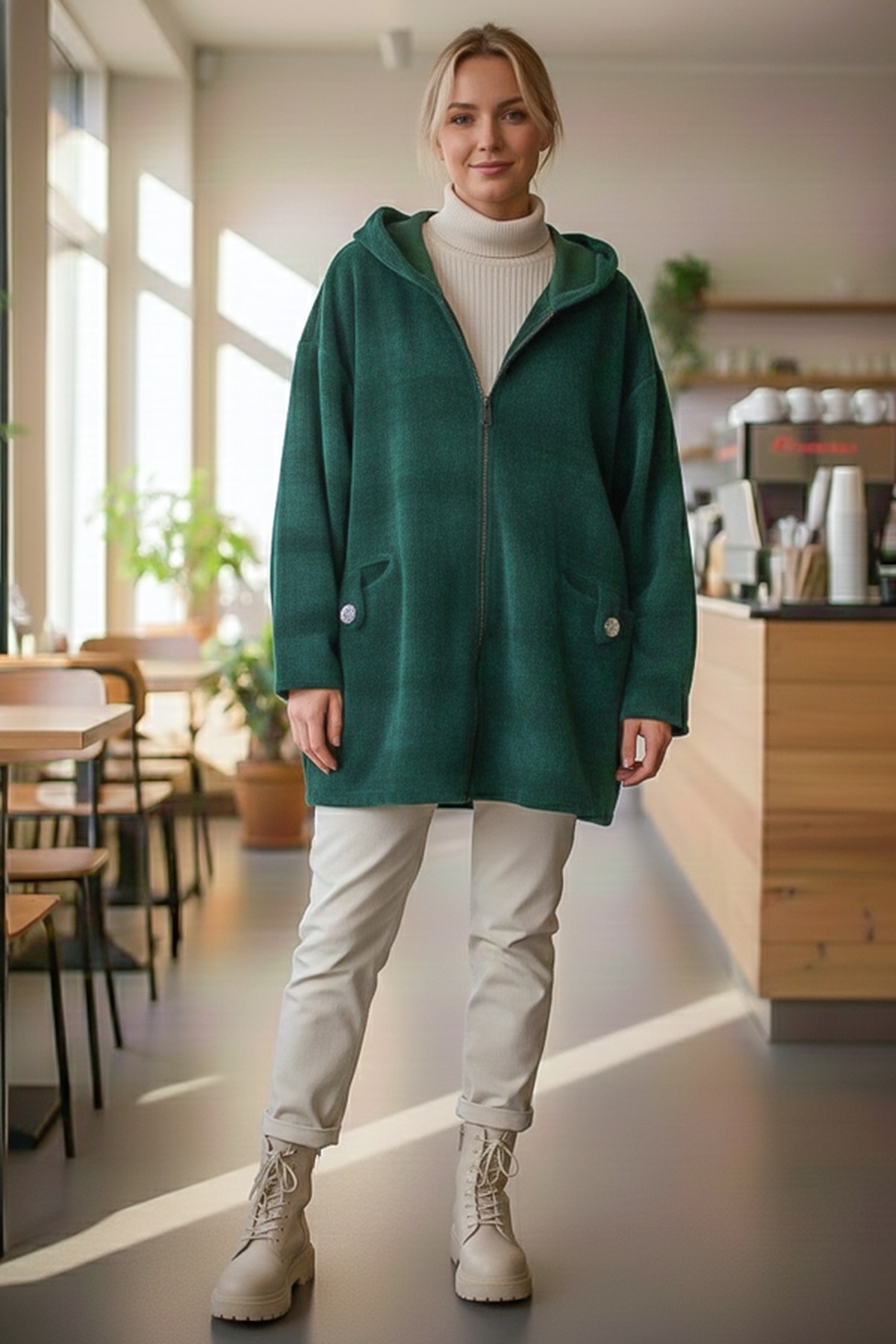 İtalyan Yeşil Kapüşonlu Uzun Kol Fermuarlı Cepli Casual Kadife Oversize Dokuma Ceket 0 0 İtalyan Yeşil Kapüşonlu Uzun Kol Fermuarlı Cepli Casual Kadife Oversize Dokuma Ceket 0 0 M10210100CE97874 Standart
