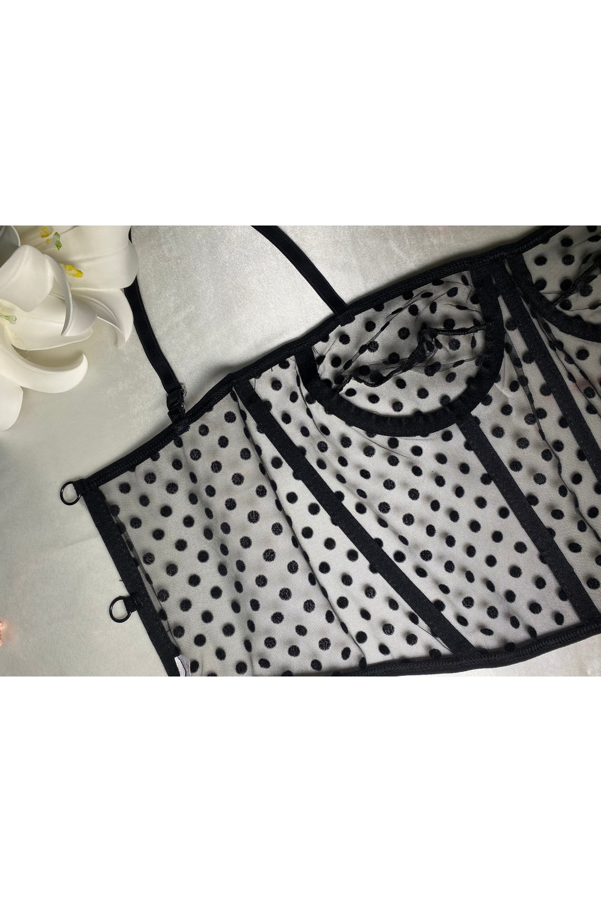 Siyah Puantiyeli Tül Büstiyer Siyah Puantiyeli Tül Büstiyer tulbustiyer 90B