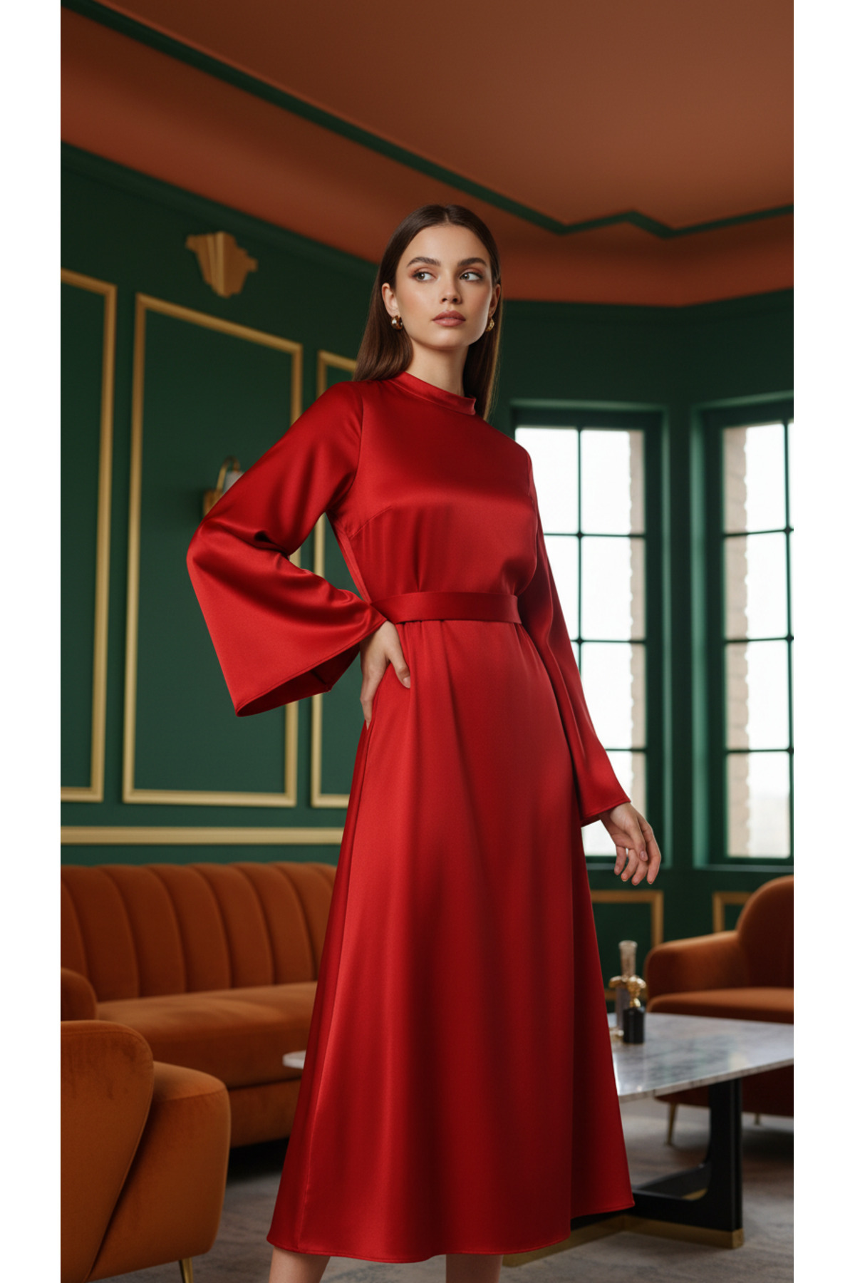 Kuşaklı & Midi Boy Şık Tafta Gömlek Elbise Kuşaklı & Midi Boy Şık Tafta Gömlek Elbise ANY-096 50